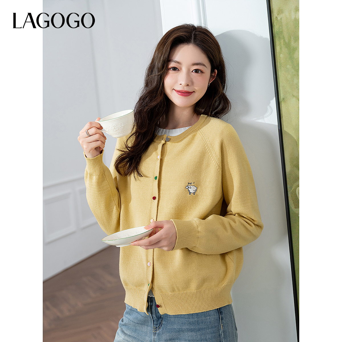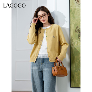 商场同款 2025新款 森马针织开衫 春季 基础圆领上衣 女短款 森柔毛衫