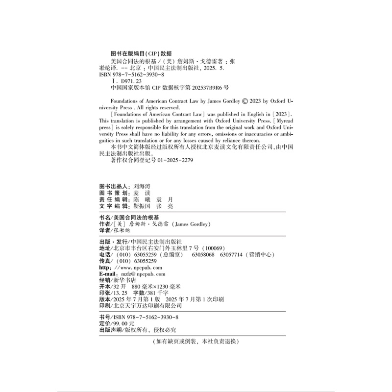 美国合同法 典型问题 根基 合同法体系书直面当代合同法实践中 4部分14章专题阐释合同法体系 詹姆斯·戈德雷 2025年麦读新书