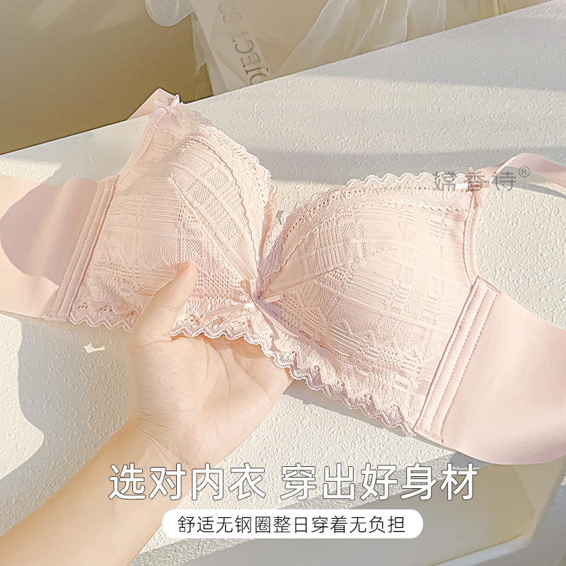 好奇蜜斯小胸聚拢内衣女薄显大无钢圈蕾丝文胸罩套装 防下垂夏 法式