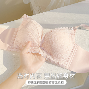 素肌良品小蔷薇无钢圈薄款 性感小胸聚拢文胸秋 透气内衣女蕾丝套装