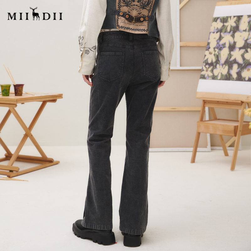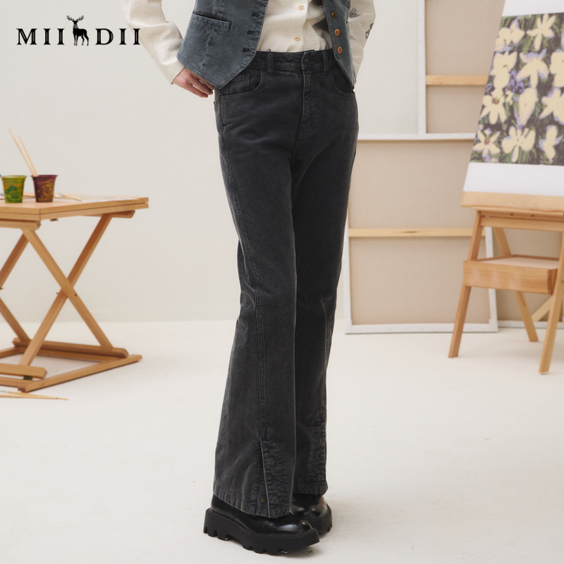 253MK1185 百搭洗水长裤 谜底灯芯绒喇叭裤 女25秋回归乡野复古修身