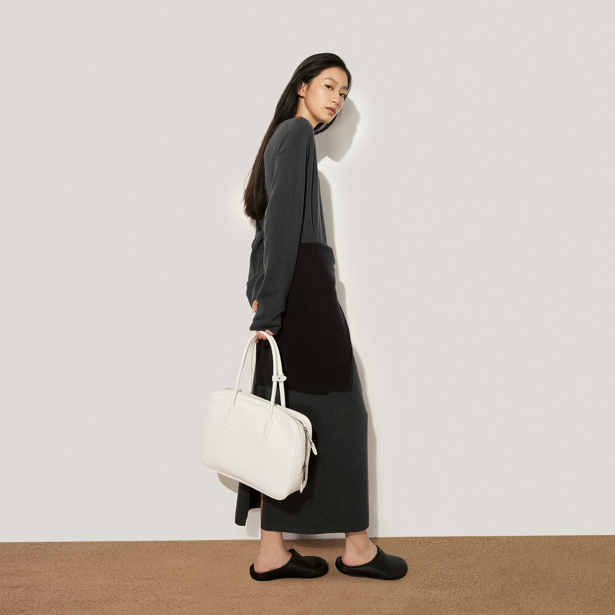 OCHIRLY欧时力 羊毛V领毛织连衣裙女直身长裙松弛感2025秋冬尖货