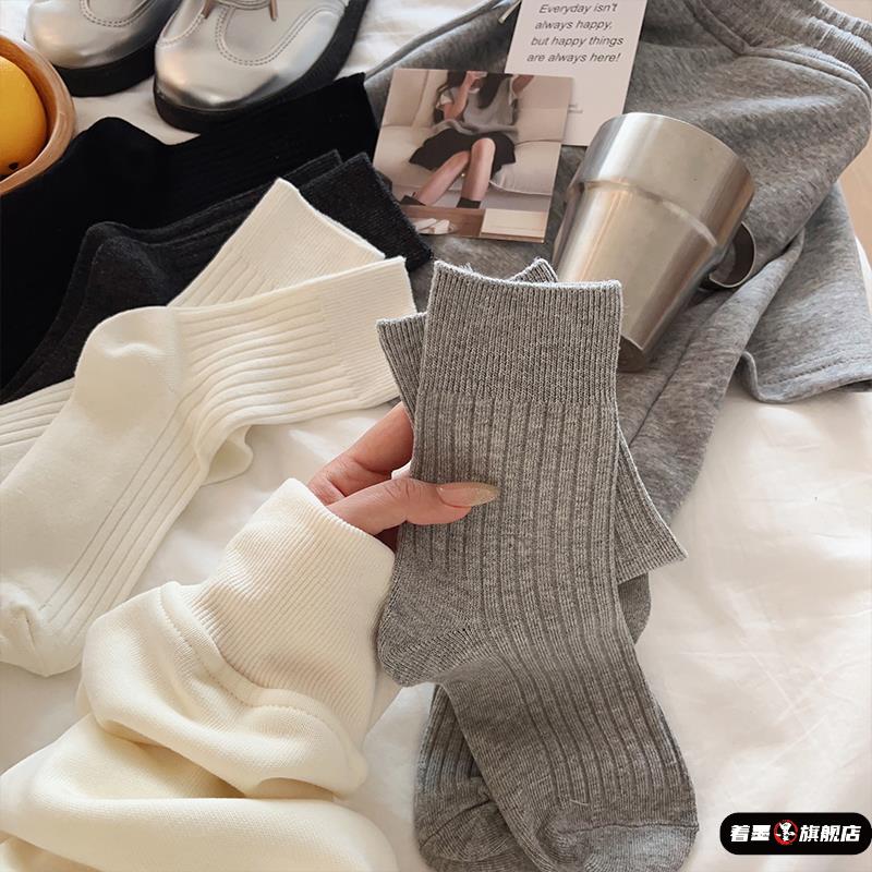 堆堆袜长袜 日系纯色春秋季 灰色袜子女中筒袜ins潮纯棉秋季 薄款
