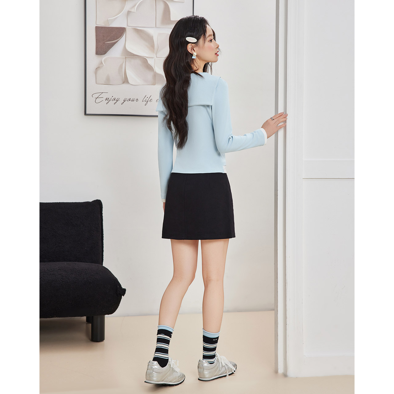 辣妹修身 打底衫 显瘦上衣 T恤女春秋内搭短款 设计感小众正肩V领长袖