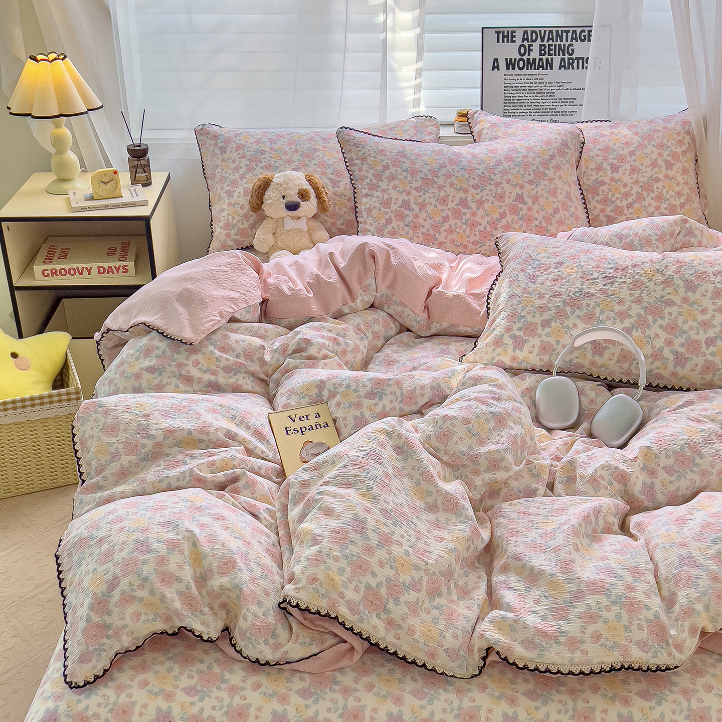 无印良品全棉床单学生宿舍纯棉卡通儿童被套秋冬三件套床上用品