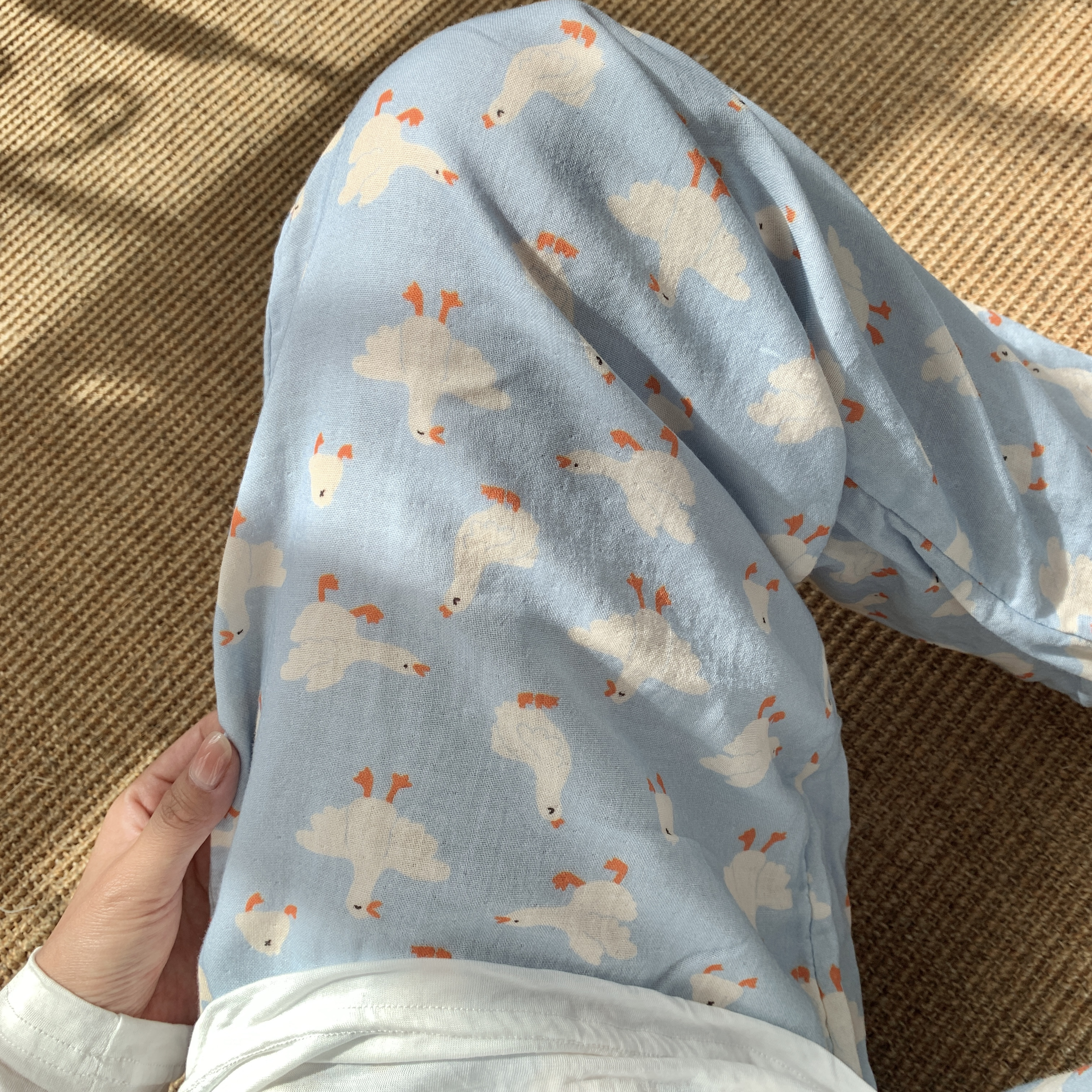 双层纱布睡裤 可外穿全棉遛弯家居裤 长裤 薄款 女夏季 大白鹅