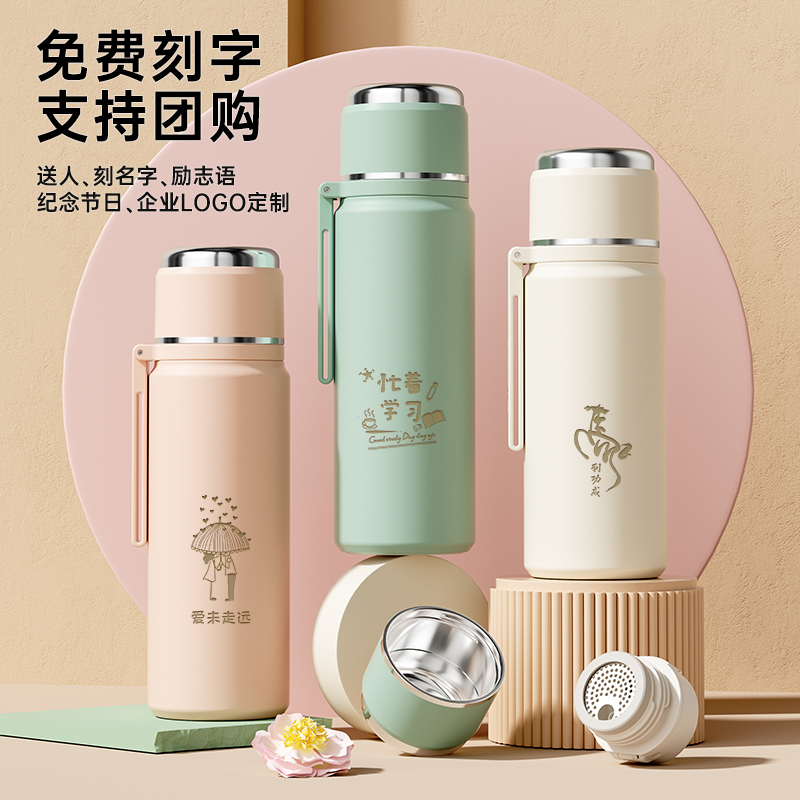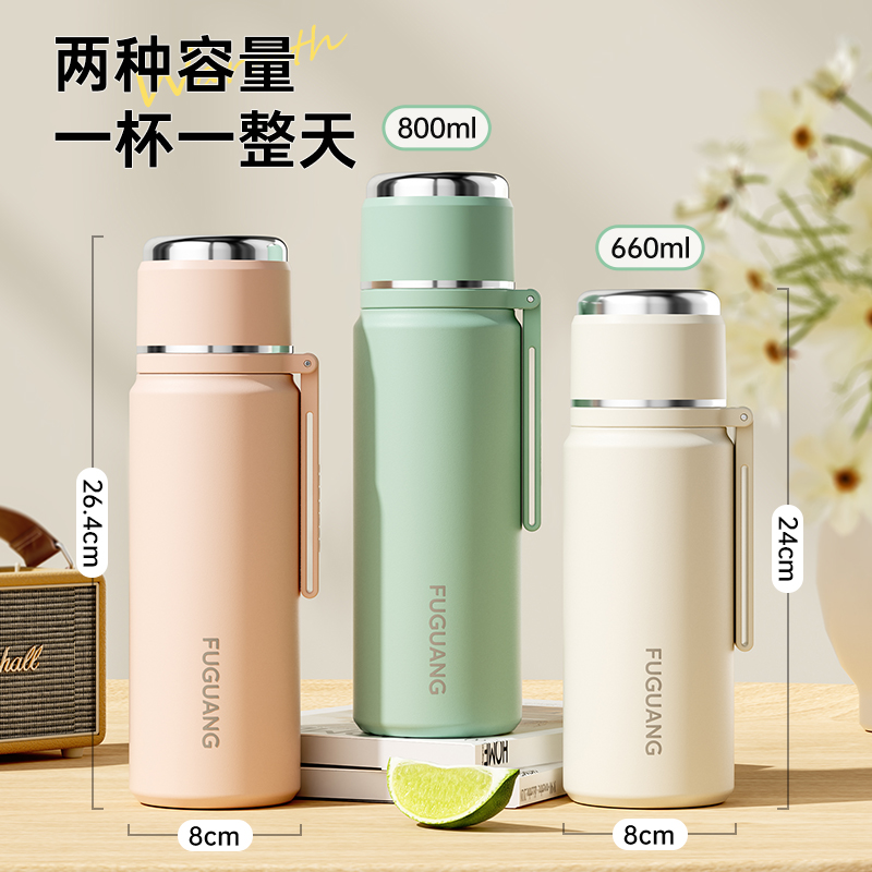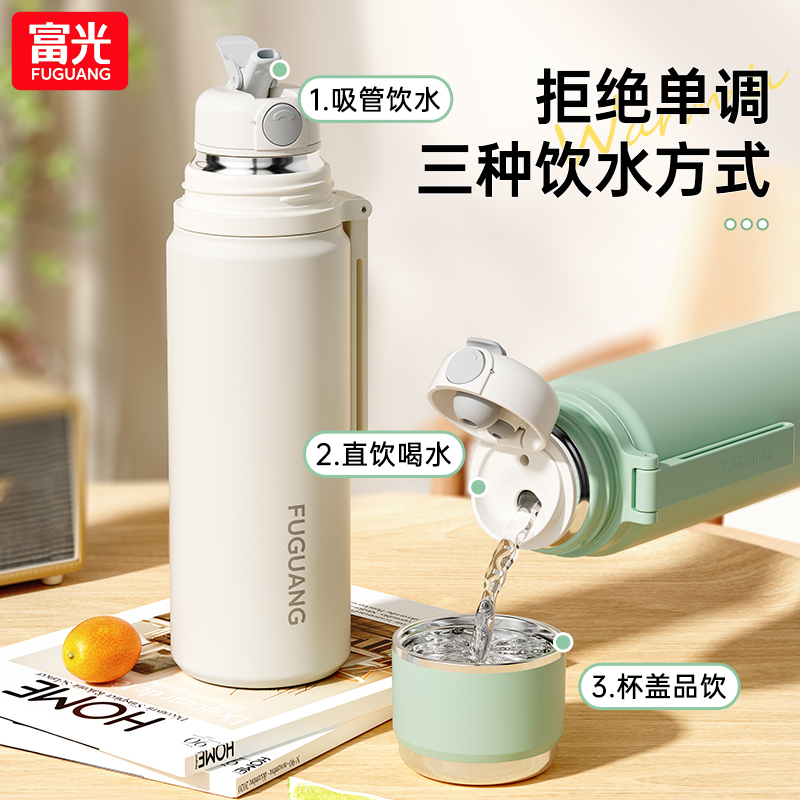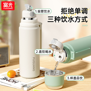 富光保温杯女新款 大容量男学生上学专用便携316L不锈钢带吸管水杯