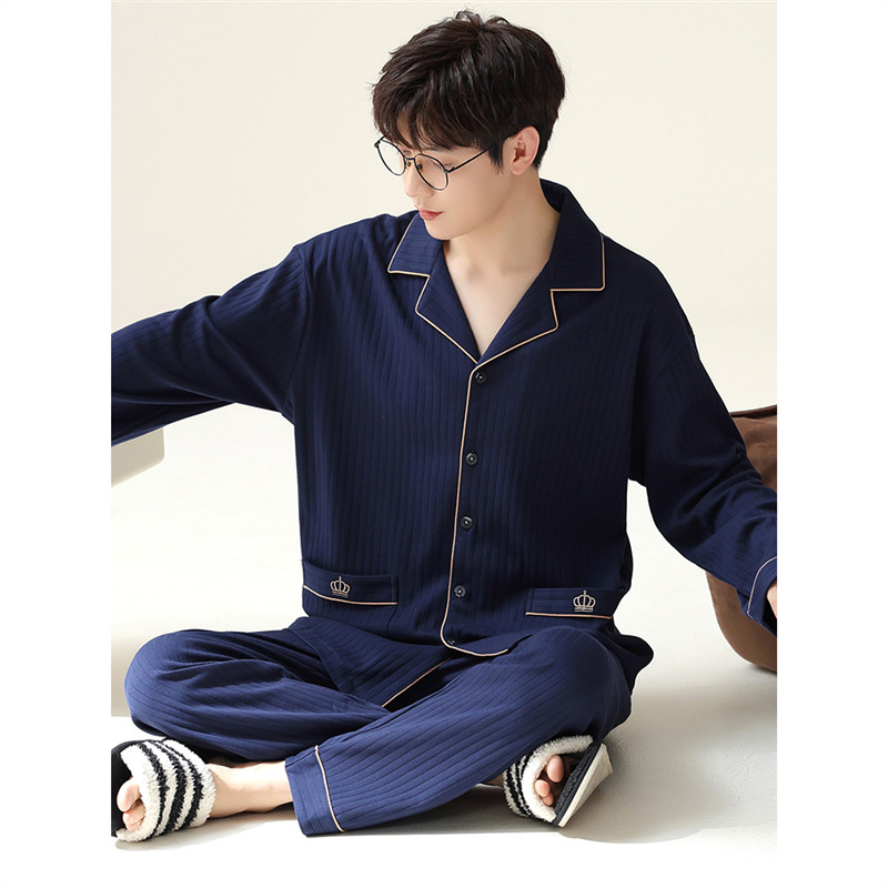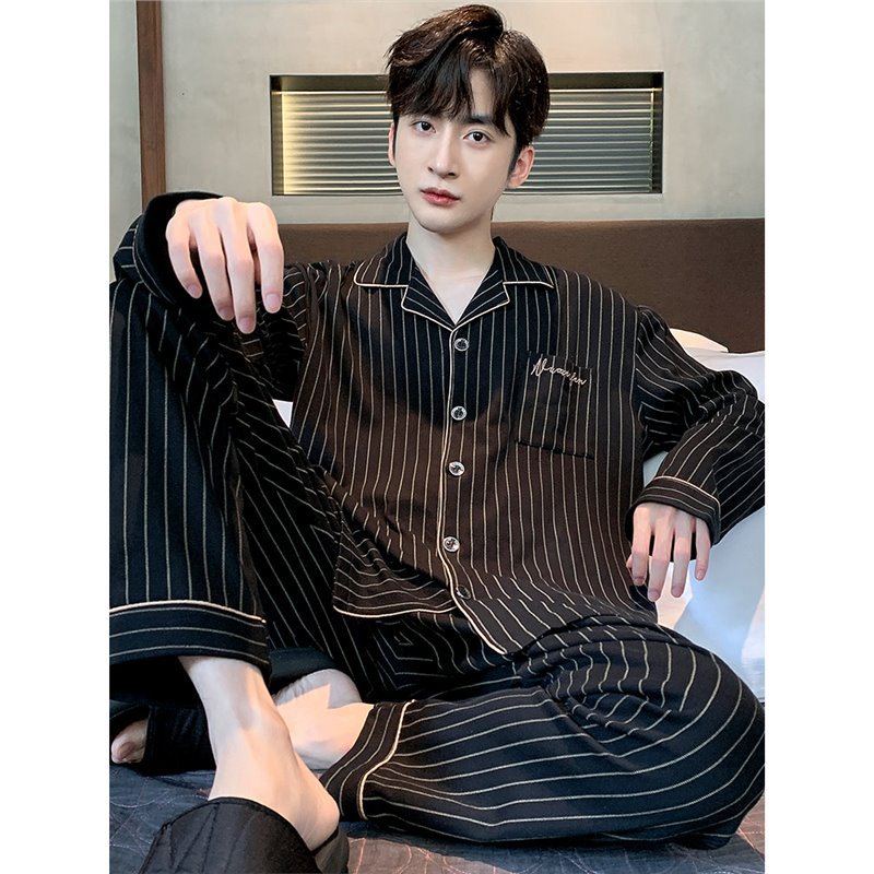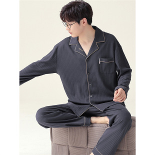 睡衣男款 2025新款 春秋季 大码 纯棉青少年春夏天家居服 长袖 条纹男士