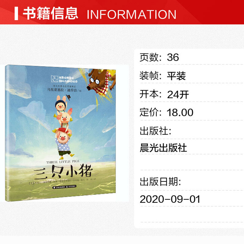 约瑟夫·雅各布斯著 绘本图画书 小学生一年级二年级课外书少儿动漫书少儿世界经典 三只小猪 晨光出版 英 童话非注音版 社 正版