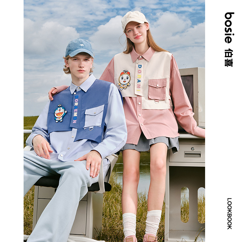 高级感痞帅长袖 男秋季 衬衣宽松百搭情侣外套 复古蓝色格子衬衫 美式