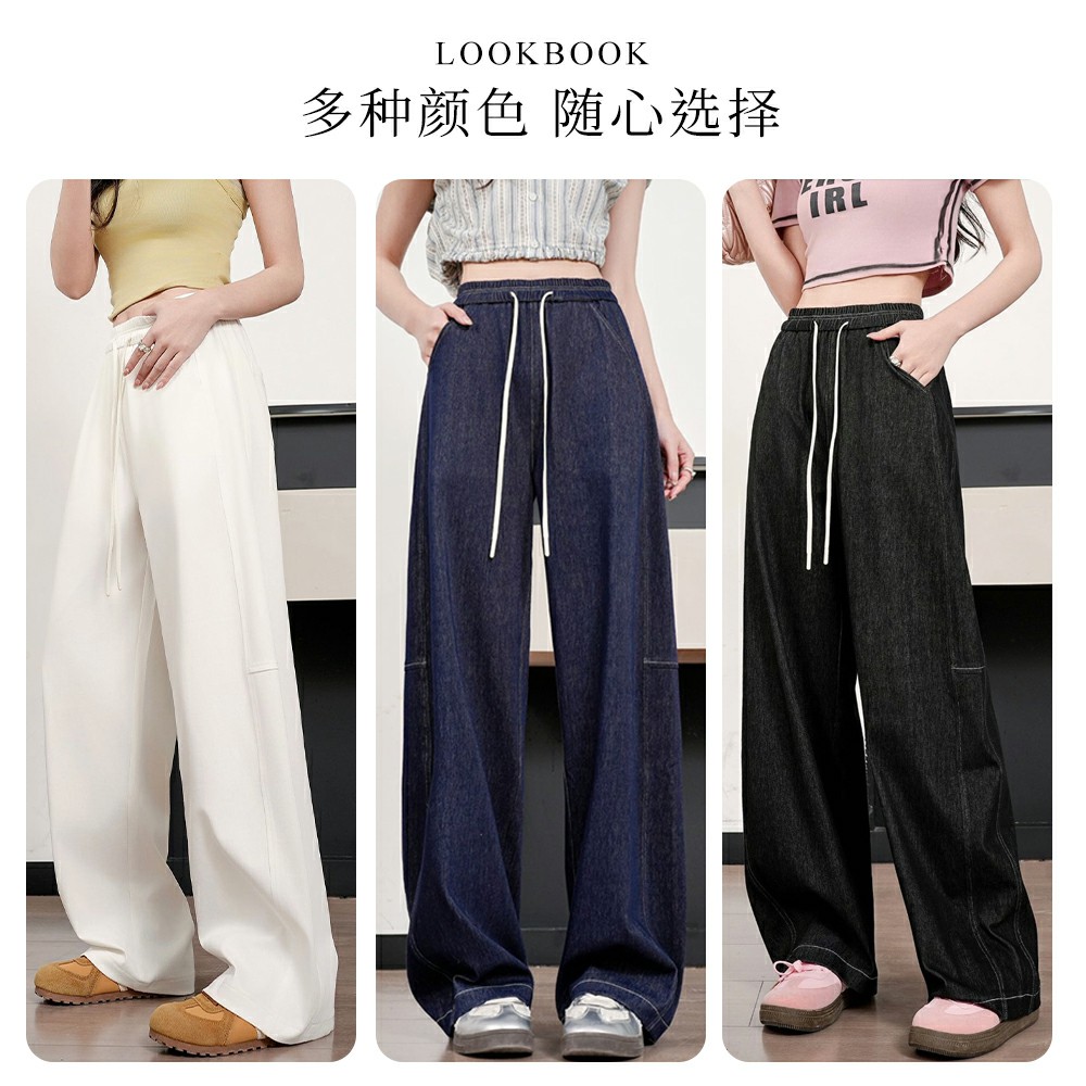 高腰运动休闲裤 vilan 宽松阔腿裤 女2025新款 子 慧兰直筒弯刀牛仔裤