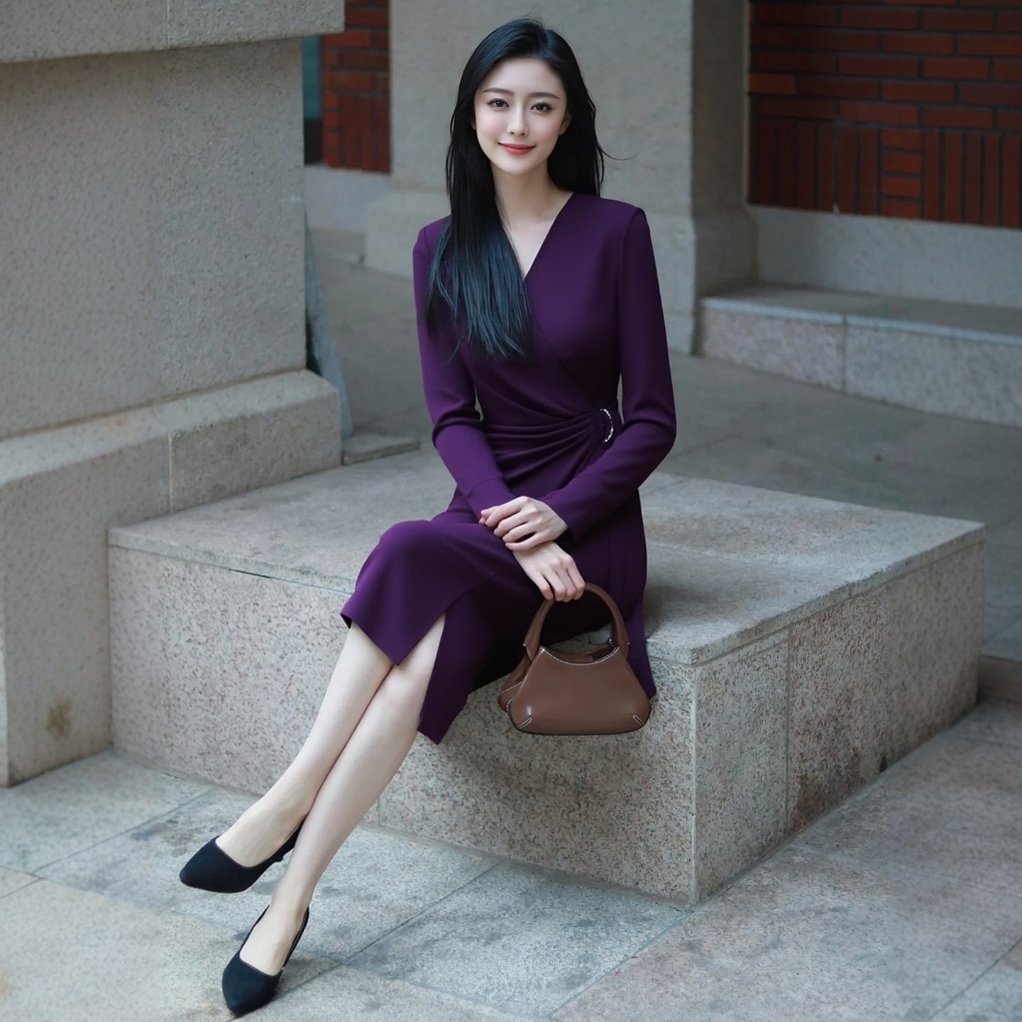 轻奢醋酸优雅气质围裹式 新款 收腰裙子 连衣裙女秋季 赢智尚outlet