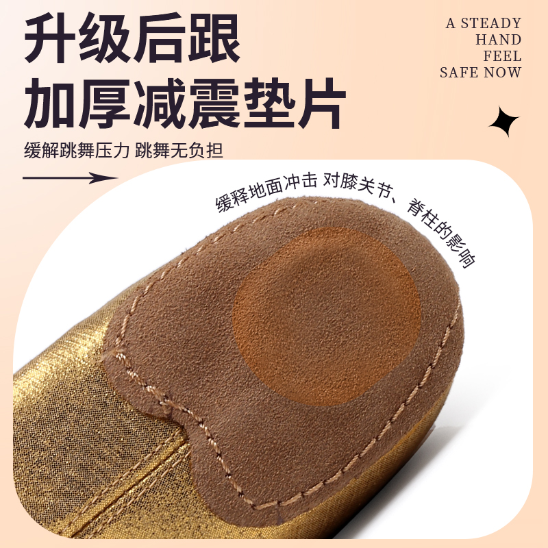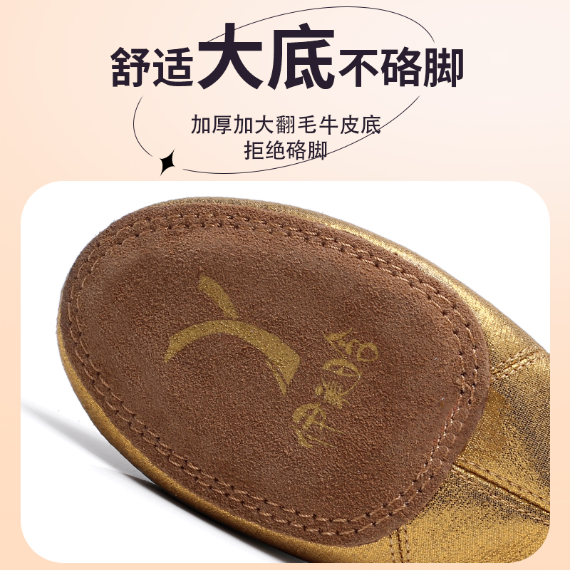 新款 中国舞专业练功不累脚 免系带金色无跟古典舞成人女软底舞蹈鞋