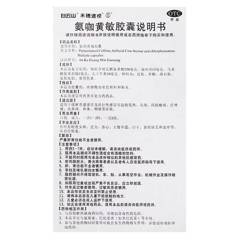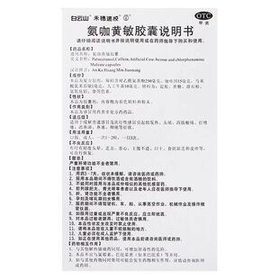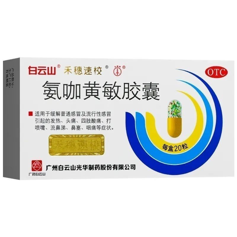 白云山禾穗氨咖黄敏胶囊20粒发热头痛流鼻涕速效伤风感冒药鼻塞