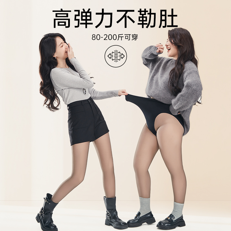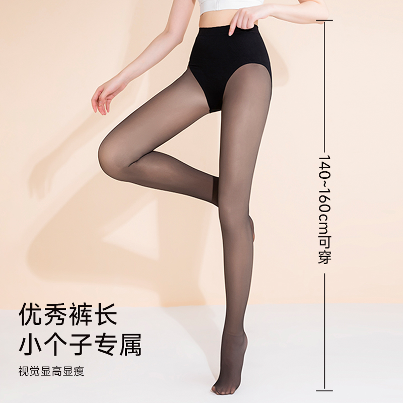 打底裤 猫人小个子MM黑丝光腿神器女加绒超透裸感黑透肤连裤 袜大码