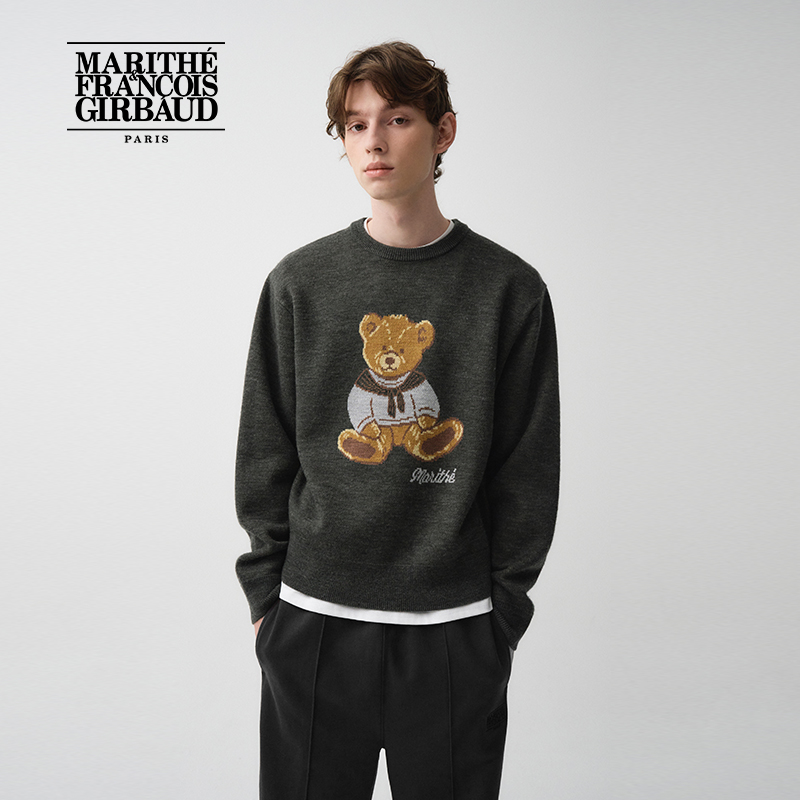 圆领复古小熊上衣25年秋韩系 经典 MARITHE涂鸦熊毛衣 潮流男女同款