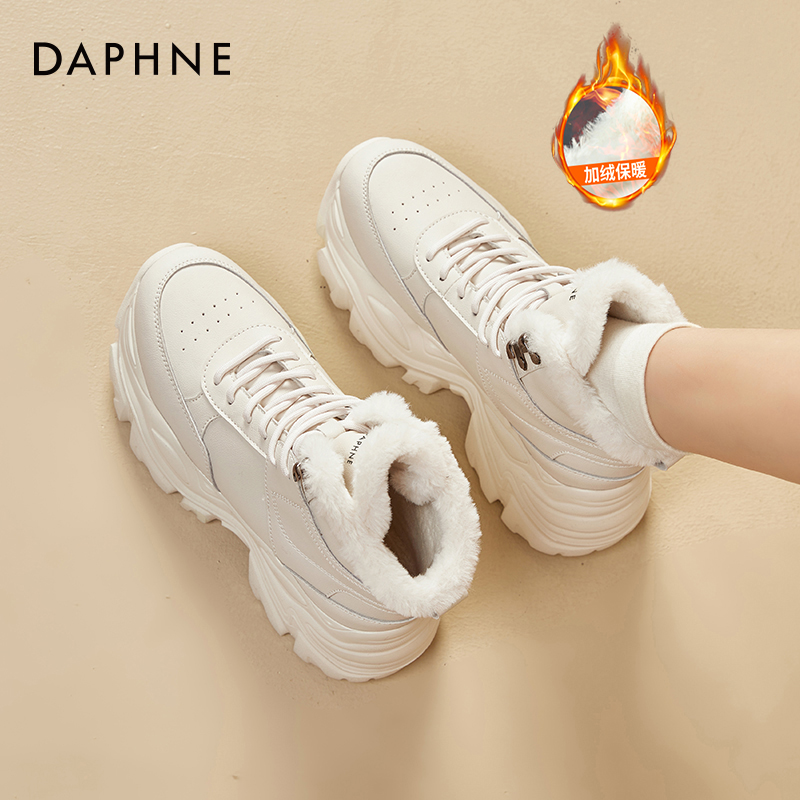 加厚保暖高帮老爹鞋 冬季 厚底雪地靴棉靴 女2025新款 达芙妮加绒棉鞋