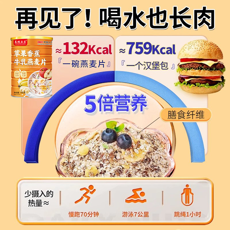 苹果香蕉牛乳燕麦片早餐即食无糖海盐咸味燕麦片官方旗舰正品 原味