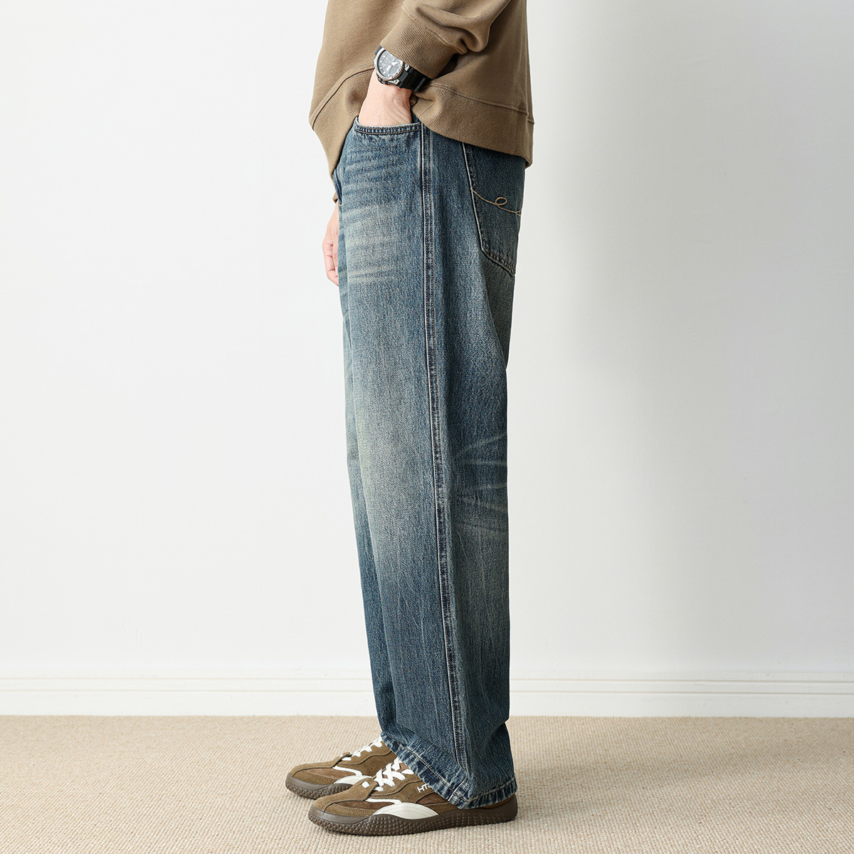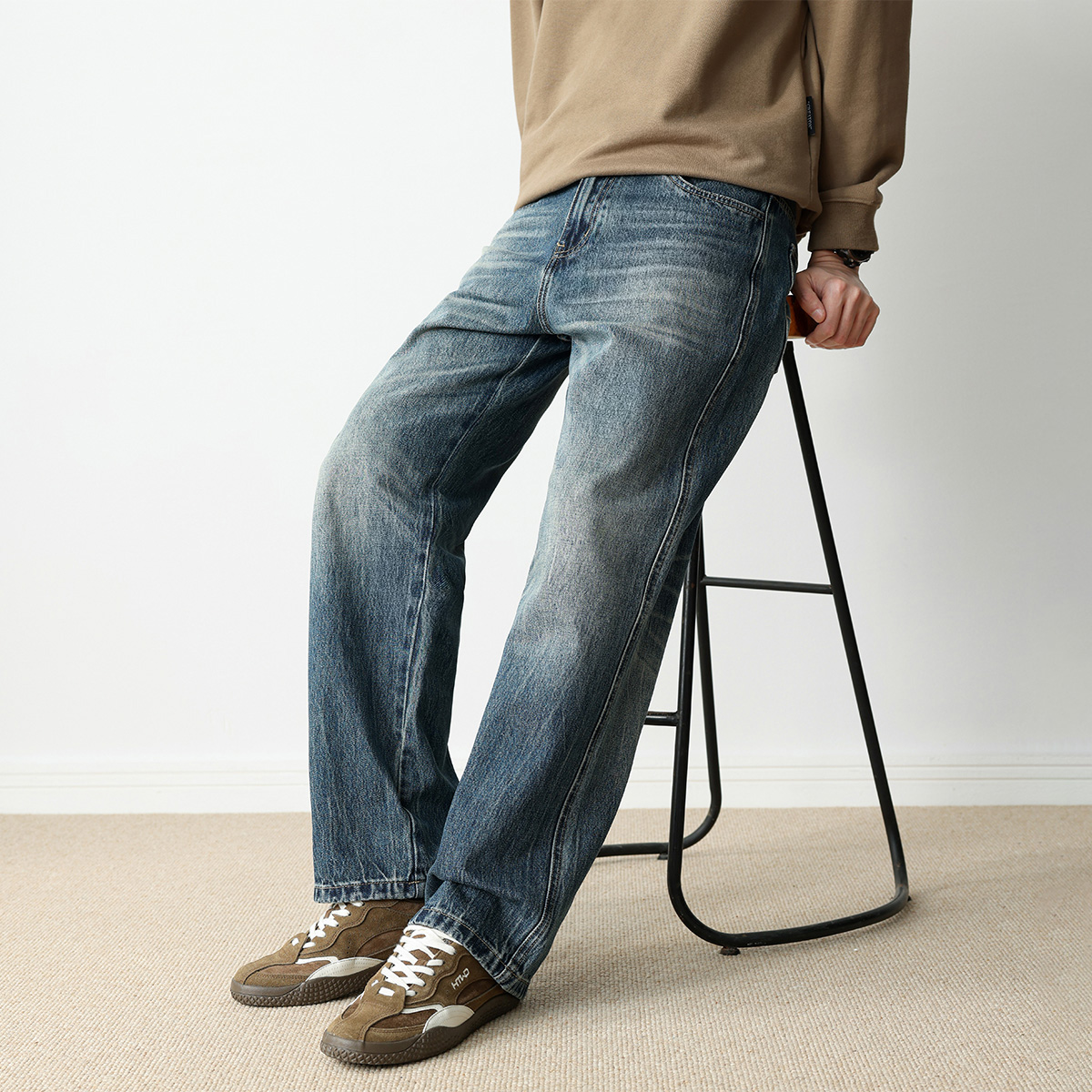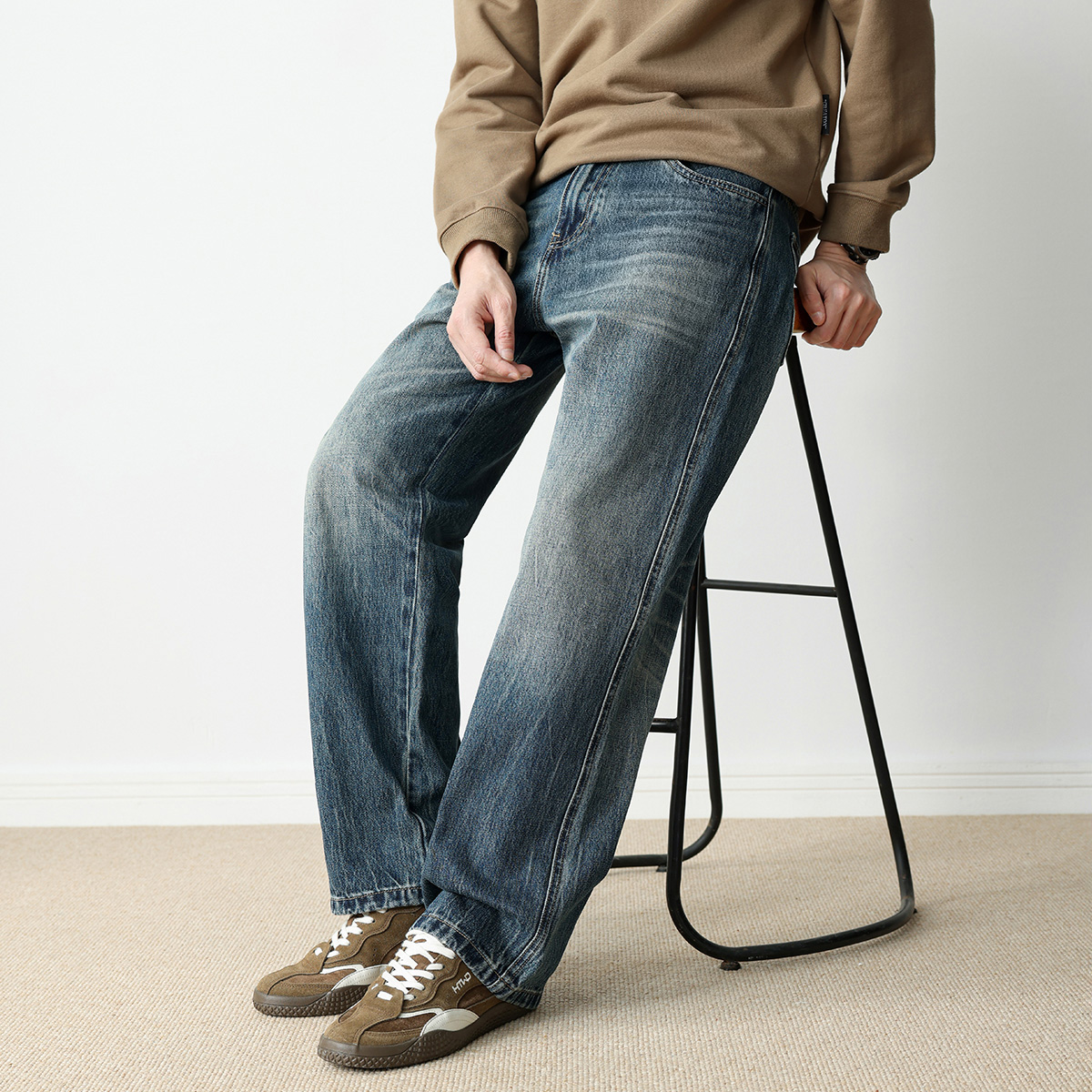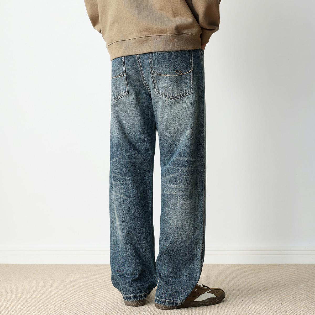 潮牌宽松阔腿休闲痞帅垂感直筒长裤 摩朝美式 男士 牛仔裤 子 扎染大码
