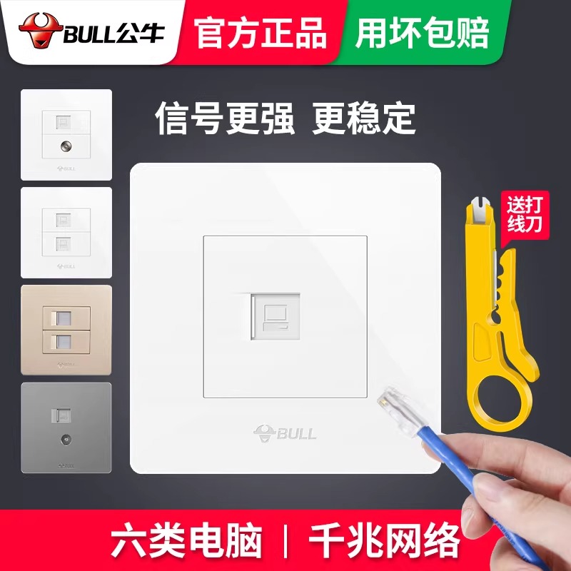 公牛六类网线插座面板电脑网络网口86型千兆宽带6六类网线插面板