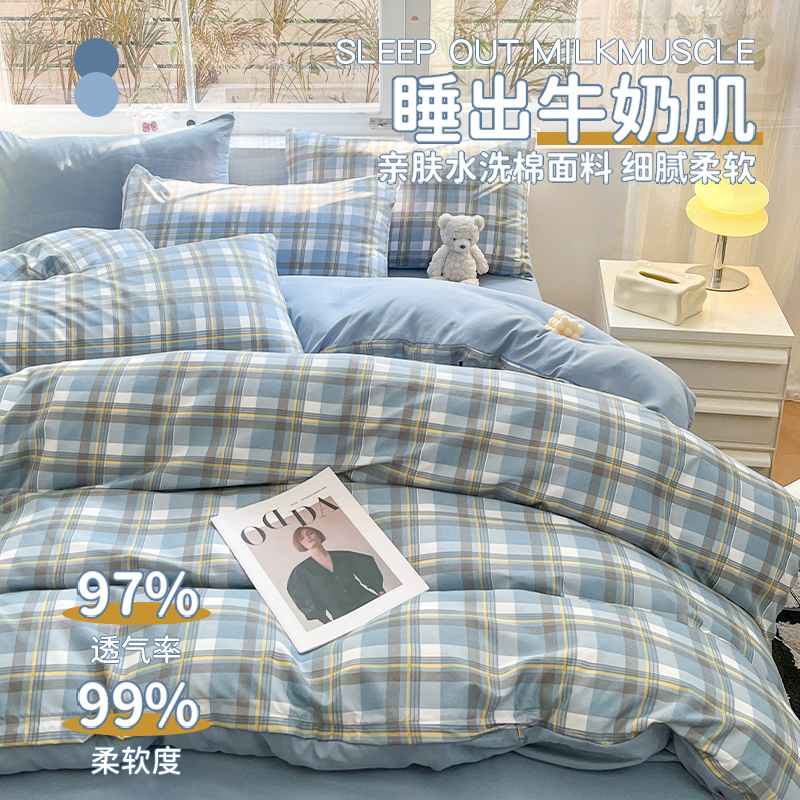 水洗被套单件150x200x230学生宿舍单人非全棉纯棉被罩三件套被单3