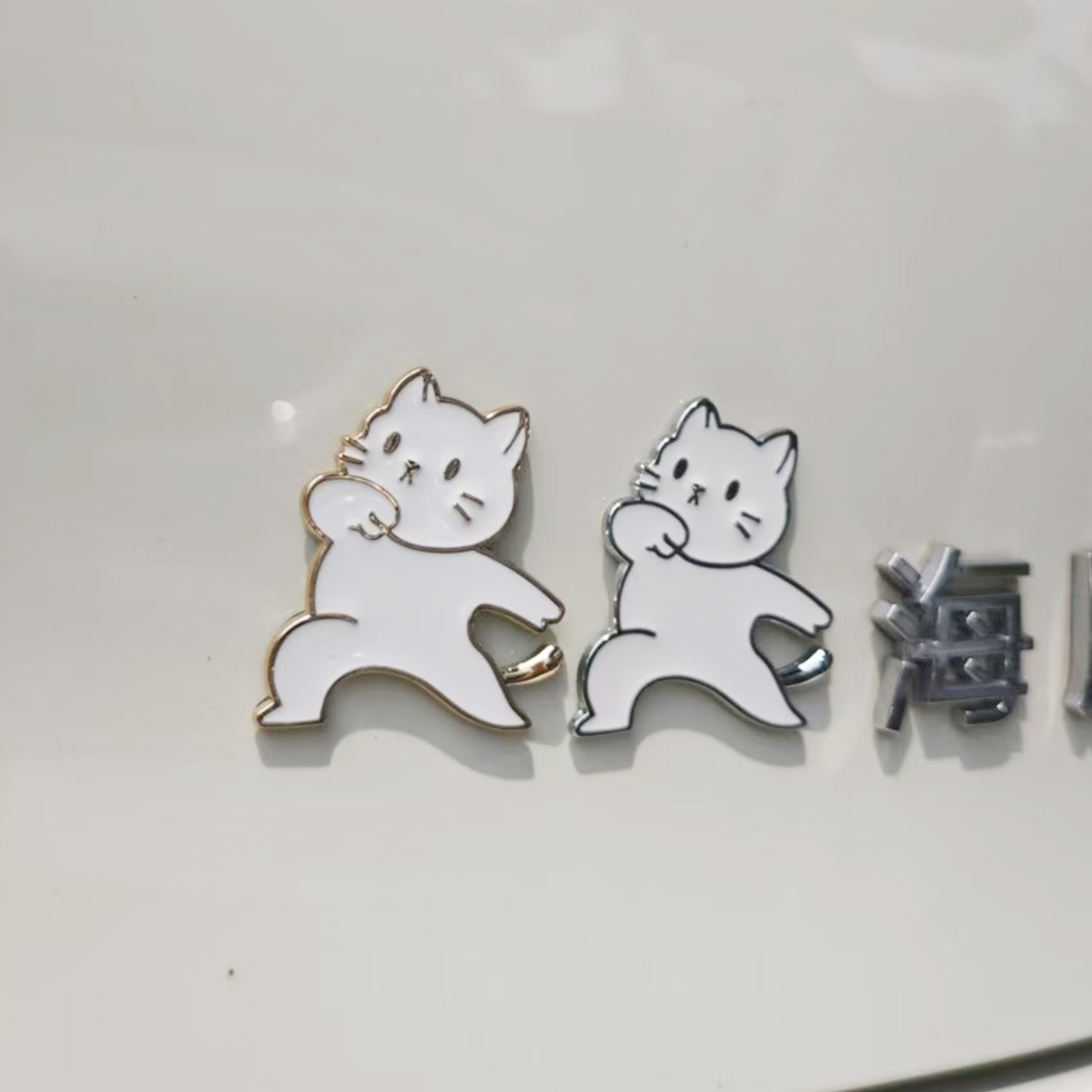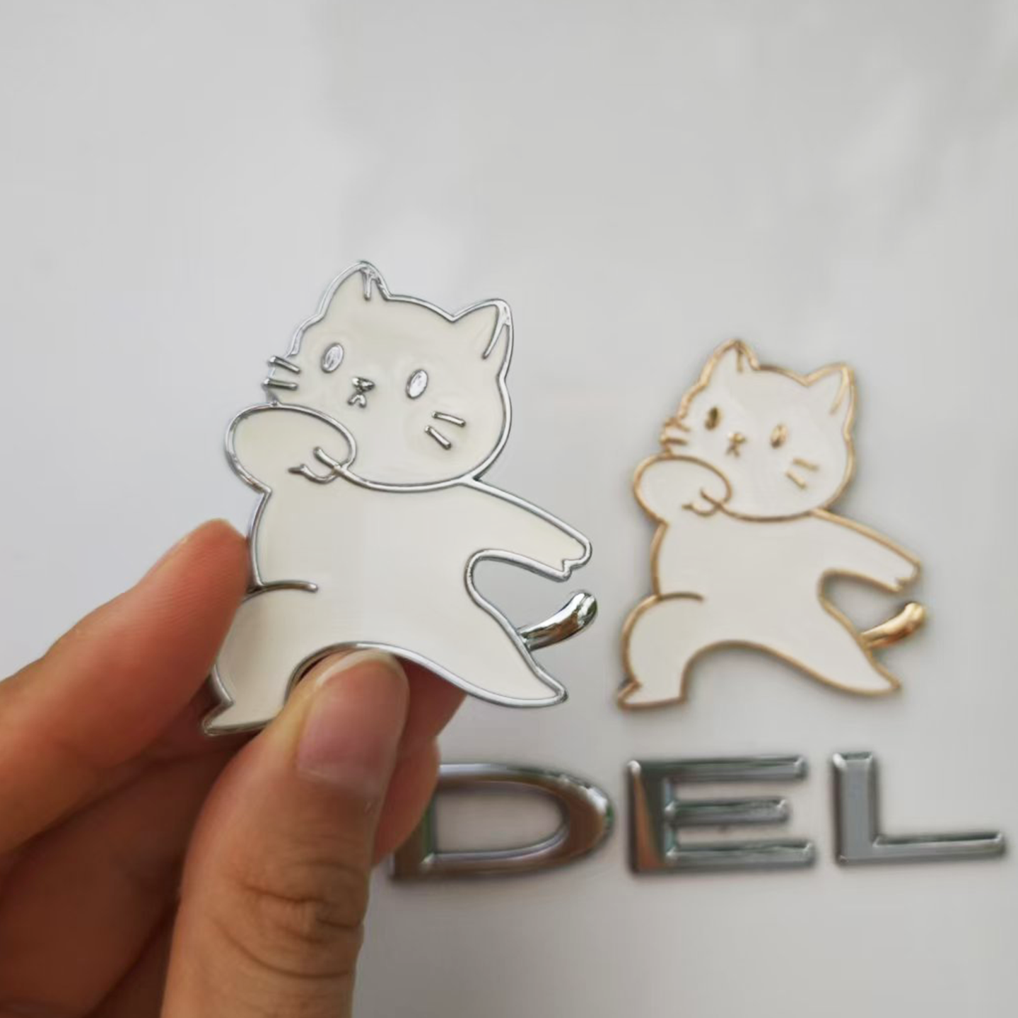 汽车车贴卡通可爱猫咪车贴奋斗猫咪尾标装 3D立体金属贴女生 饰个性