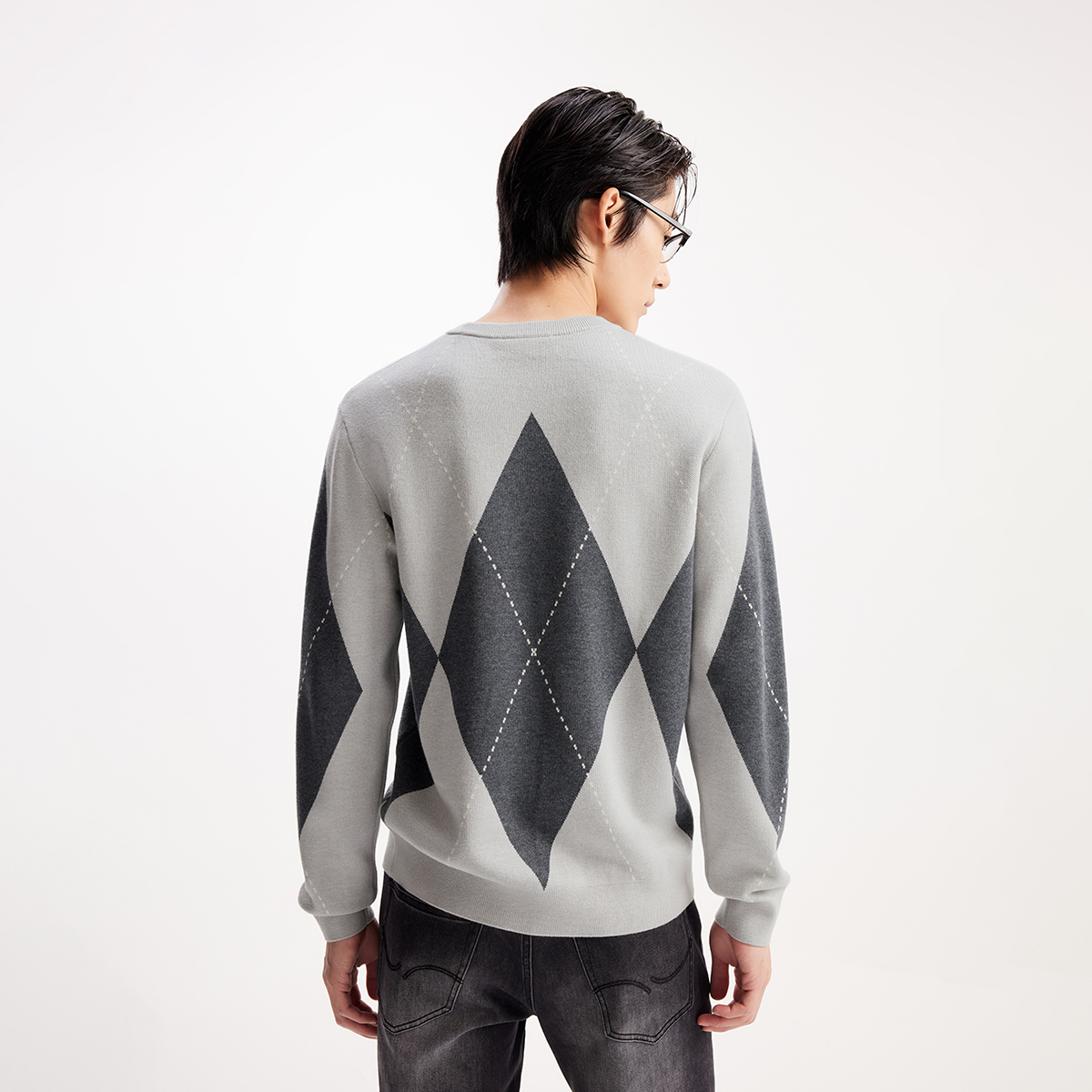 LAMLICKA蓝色小狗圆领套头毛衣男秋季 上衣 宽松慵懒风设计感针织衫