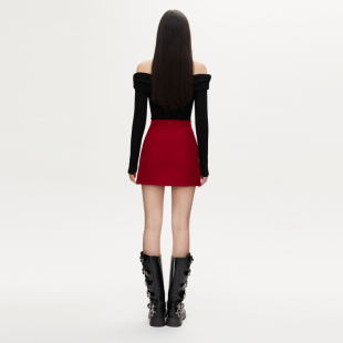 MOVEUP幻走2025冬季 .FUN系列丈根腰头加厚印花压褶复古半身裙 新款
