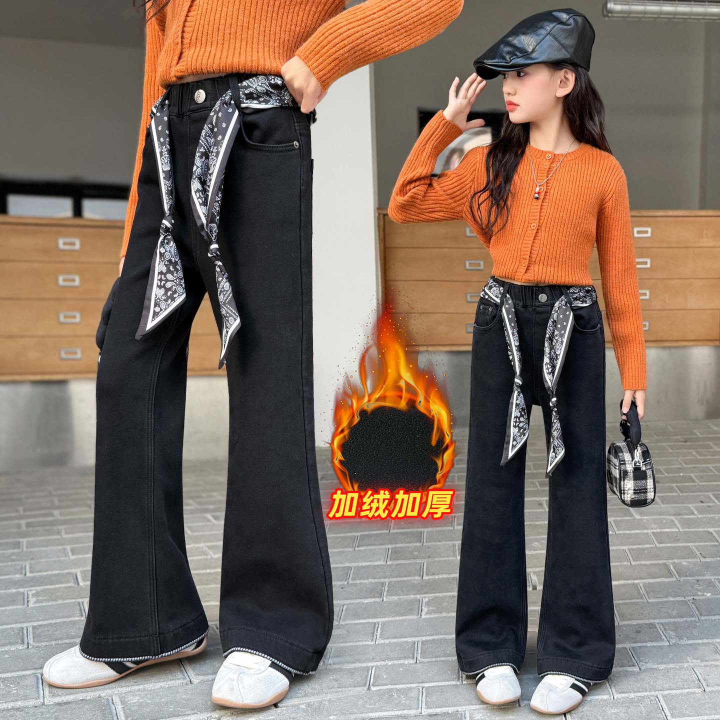 加绒可选直筒长裤 HLA 新款 25秋冬季 子男 海澜之家山不在高黑牛仔裤