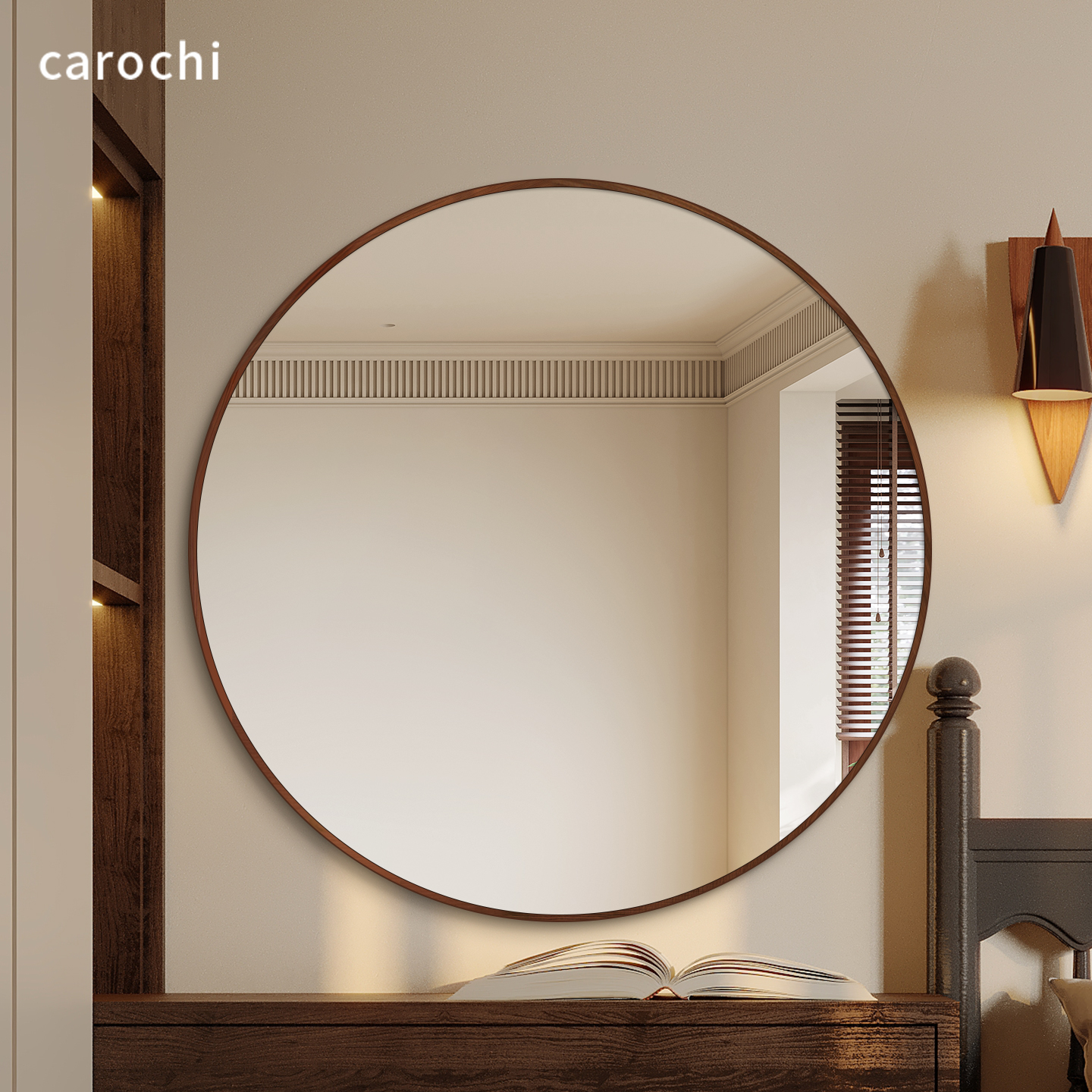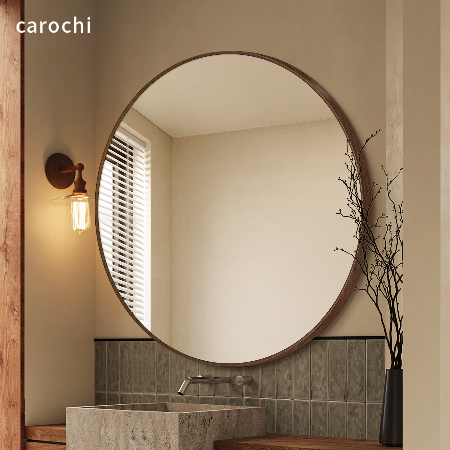 圆形铝框中古风洗手台镜子卫生间洗漱台化妆镜壁挂高清玻璃浴室镜