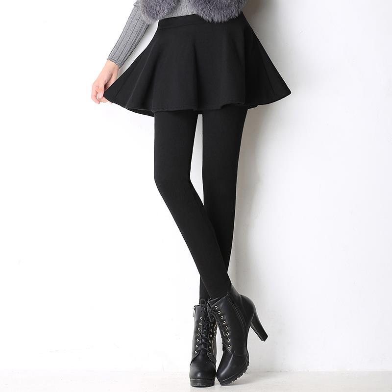 高腰显瘦保暖1011r 女秋冬加绒加厚外穿大码 假两件裤 裙一体打底裤