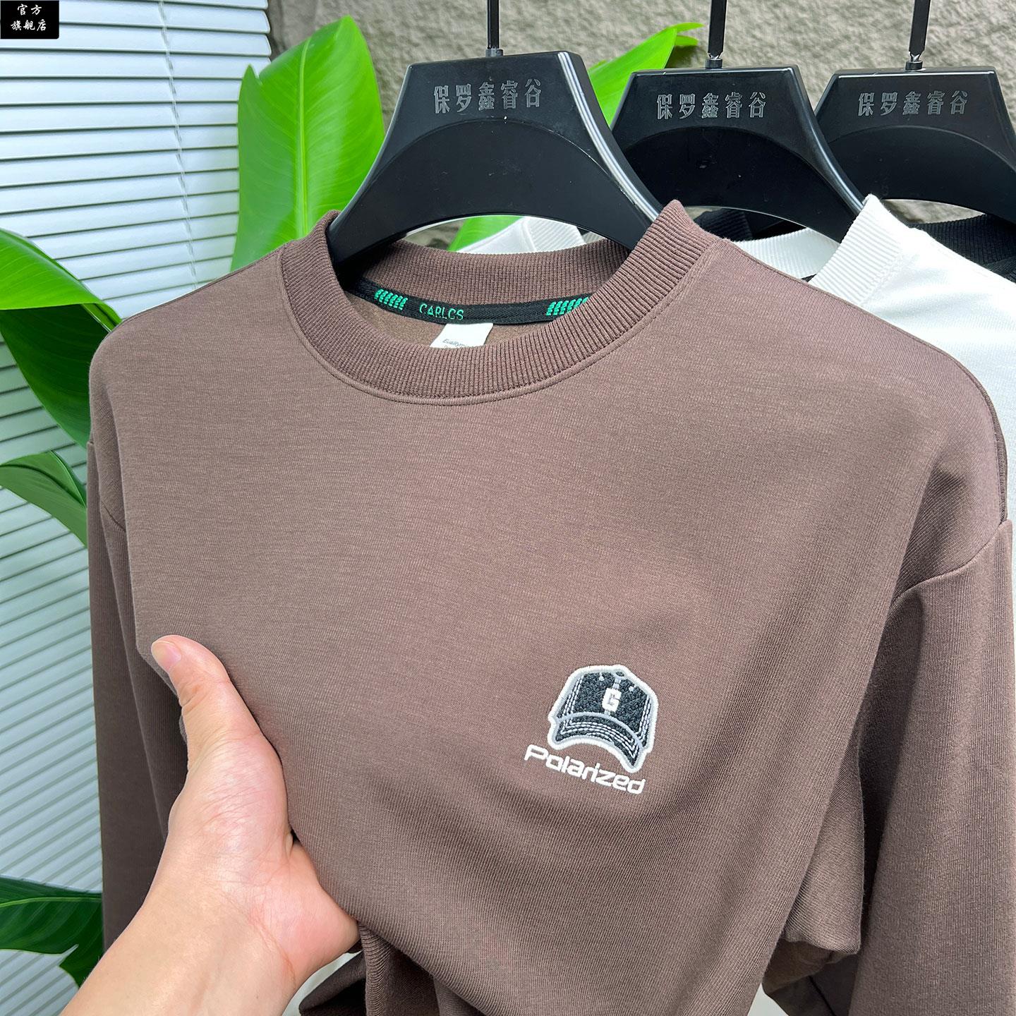 T恤男纯棉宽松卫衣圆领内搭打底衫 纯色长袖 260g重磅美式 2025秋季