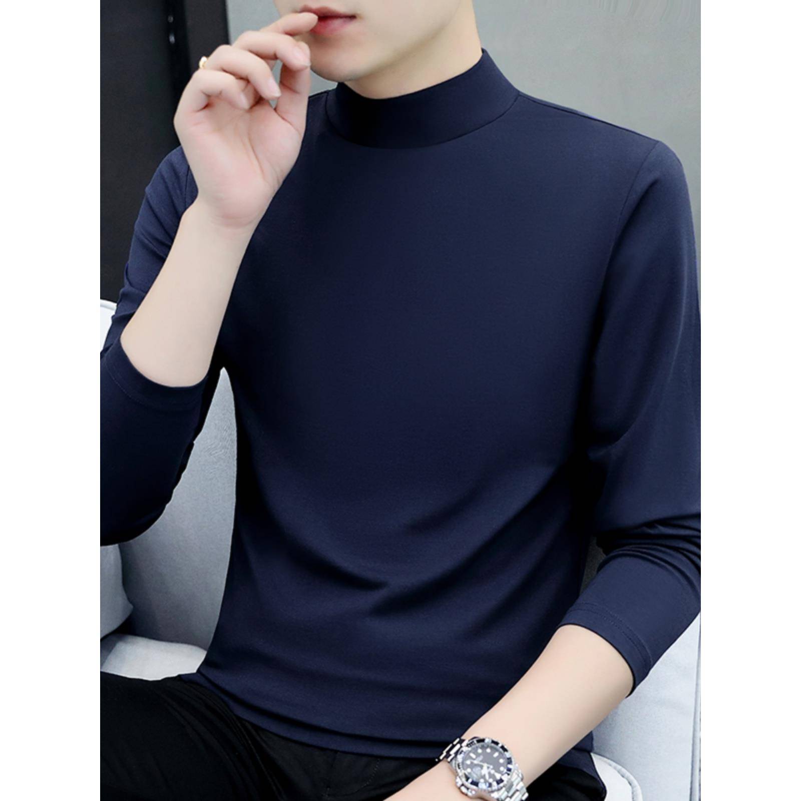 潮流男10111e 秋冬秋衣内搭时尚 半高领纯色中领纯长袖 t恤男装