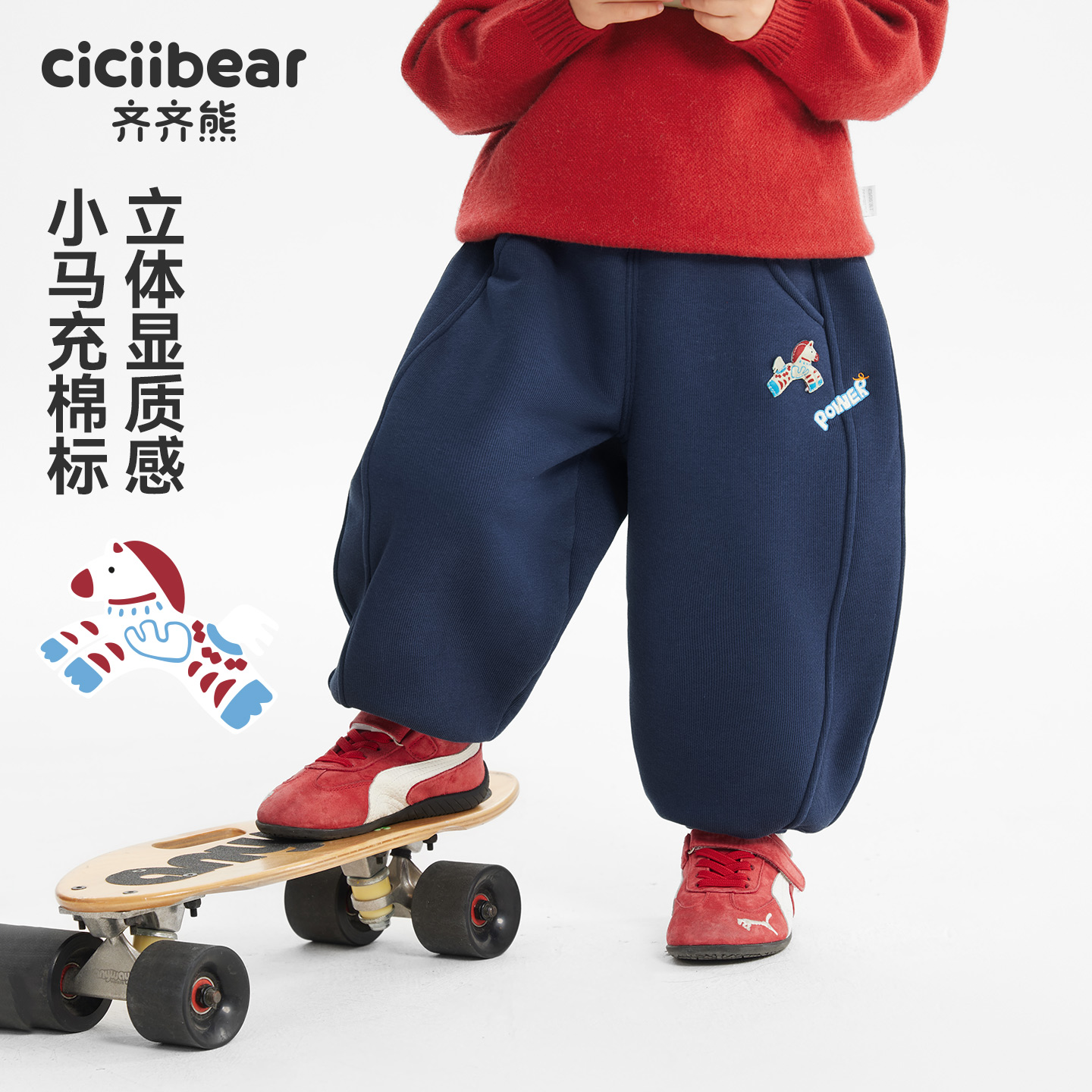 中大童弹力裤 冬加绒儿童一体绒长裤 子 25春新款 女童牛仔喇叭裤