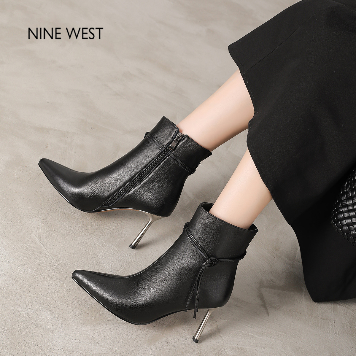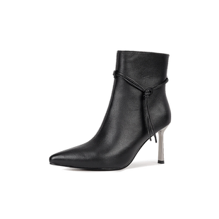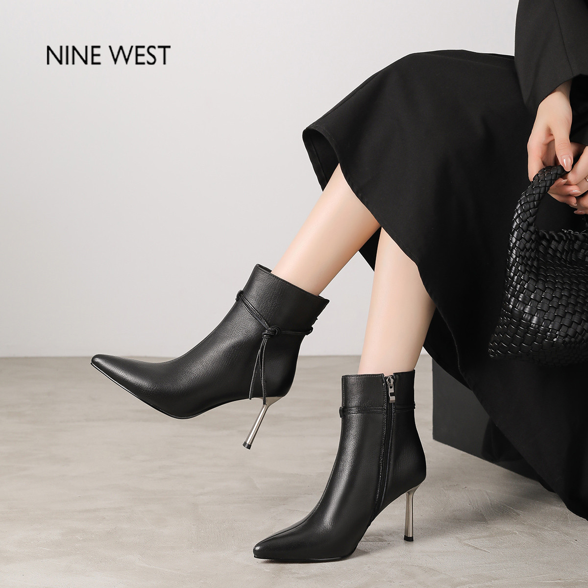 复古蝴蝶结装 Nine 法式 玖熙2025年新款 饰尖头细跟气质瘦瘦靴 West