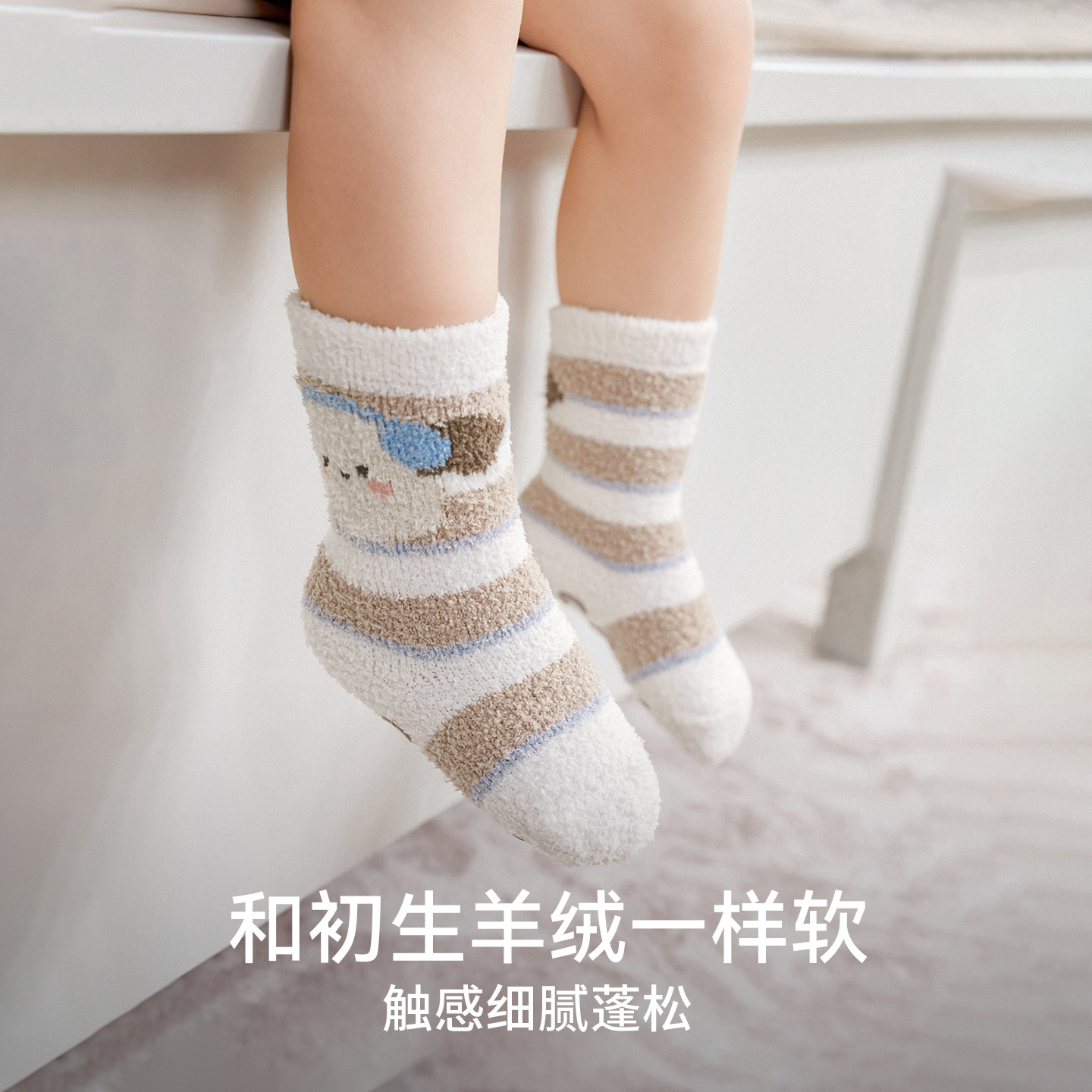半边绒地板袜男女童可爱防滑学步袜子 嫚熙儿童袜子秋冬款 自营