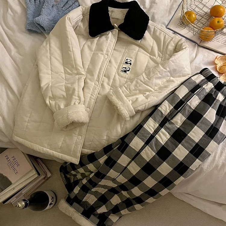 零下穿搭夹棉百搭简约棉服外套加厚女士家居服冬季 新款 睡衣秋冬季