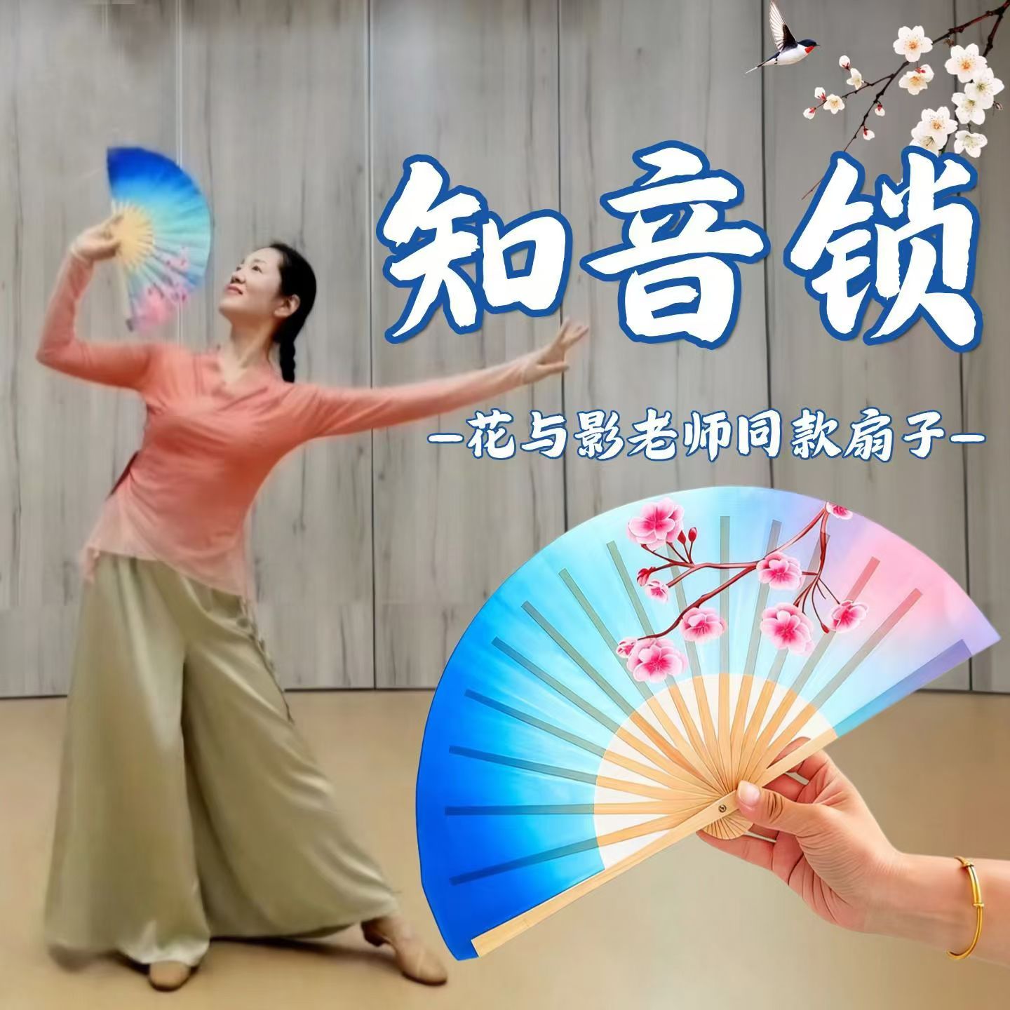 花与影老师同款 折扇蓝色渐变手绘知音锁扇子古典舞跳舞表演出道具