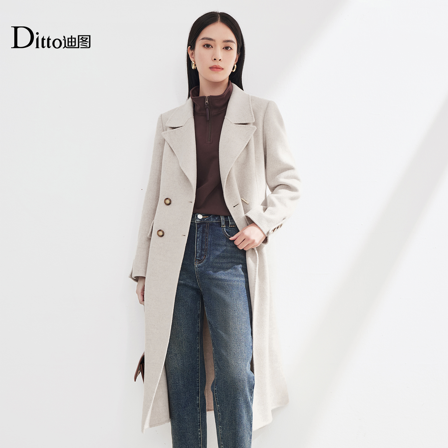 Ditto 羊毛双面尼外套 迪图高级感呢外套大衣女2025气质通勤中长款