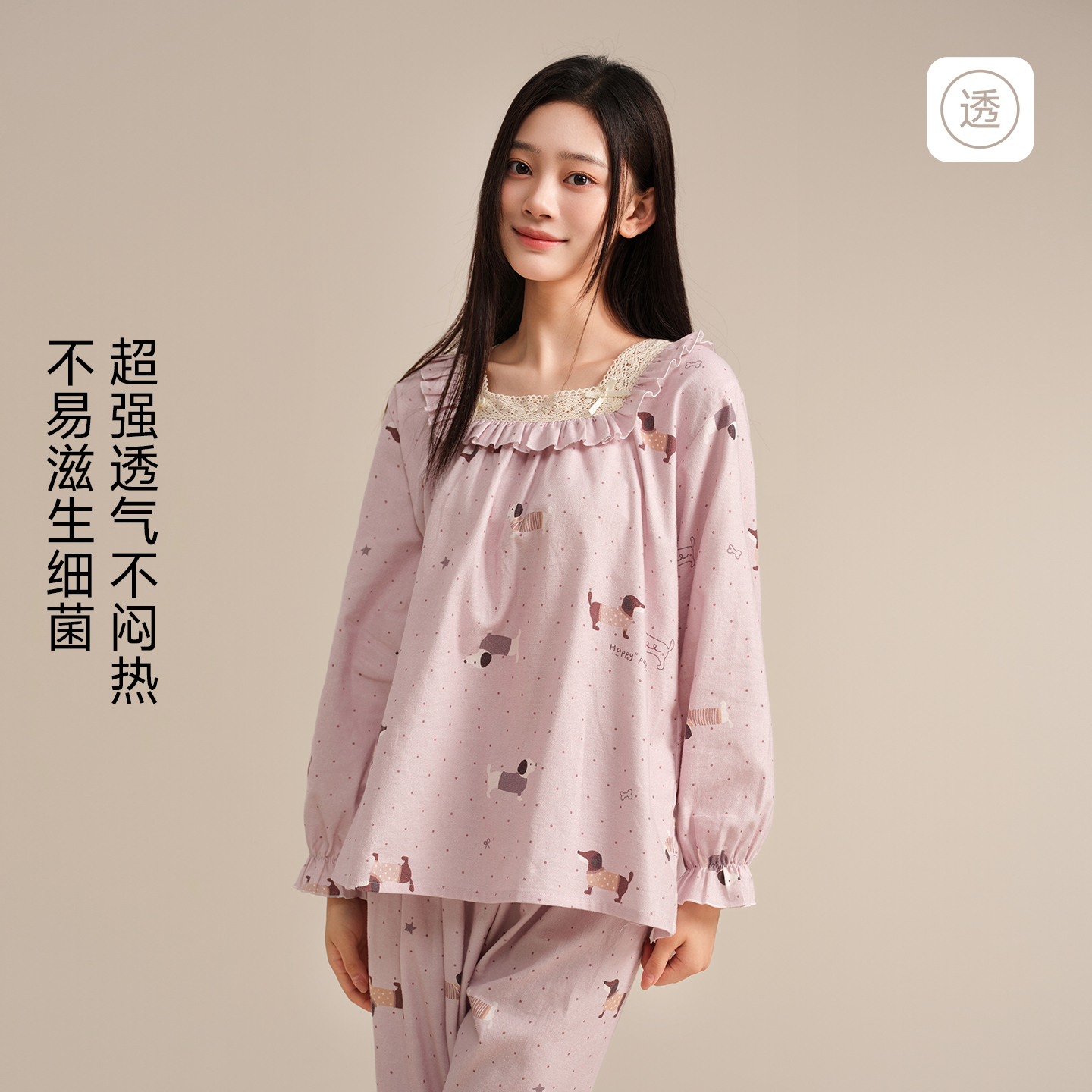 家居服套装 美季 公主风方领长袖 2025新款 美优睡衣女士全纯棉春秋季