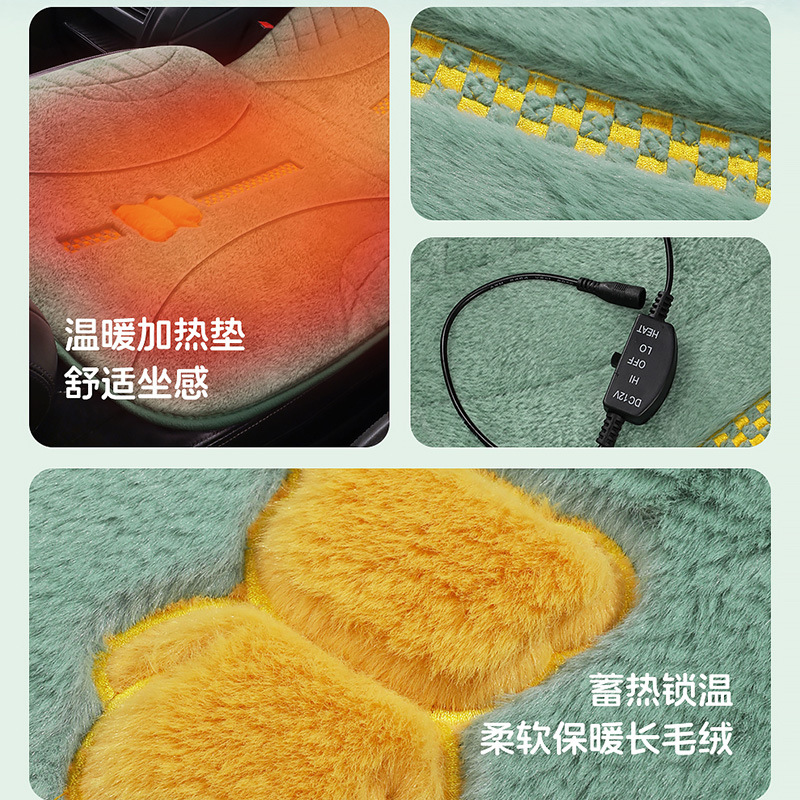 石墨烯汽车加热坐垫冬季 座椅主驾驶电暖毛绒保暖12V24V车载插电用