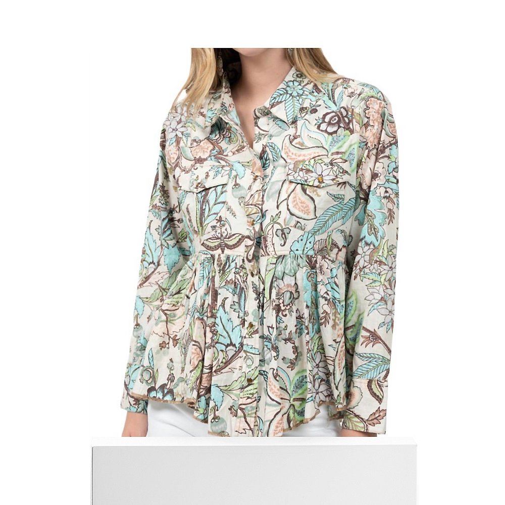 米色多色 长袖 美国奥莱直发 jane热带按扣衬衫 自营ivy