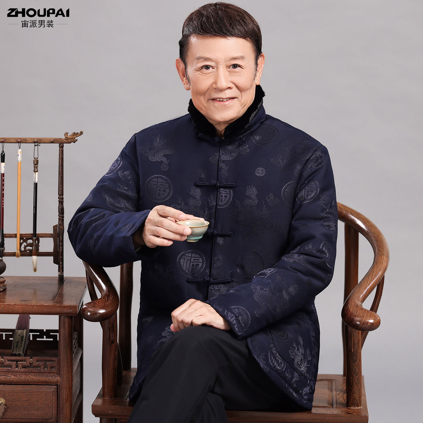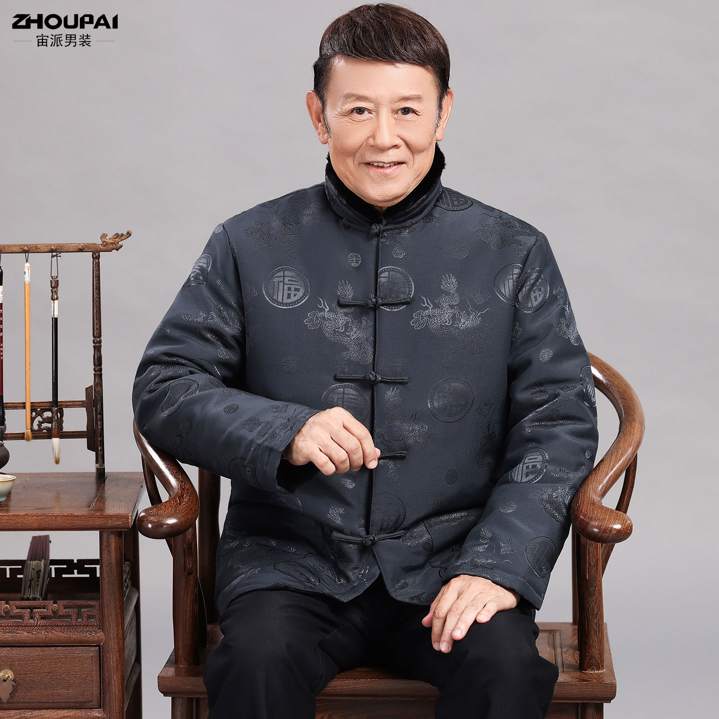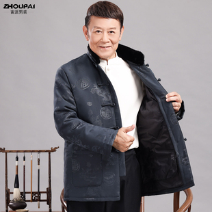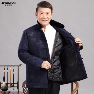 保暖两件套装 唐装 国风爷爷冬季 羽绒服外套新中式 男中老年爸爸冬装