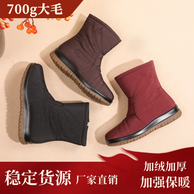 加绒加厚保暖一脚蹬软底防滑妈妈鞋 新款 雪地靴 女2024冬季 棉鞋