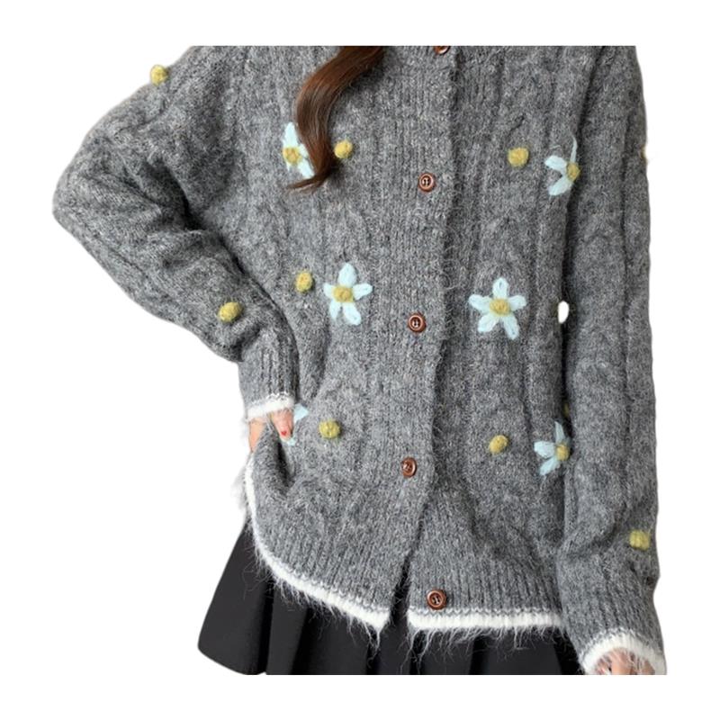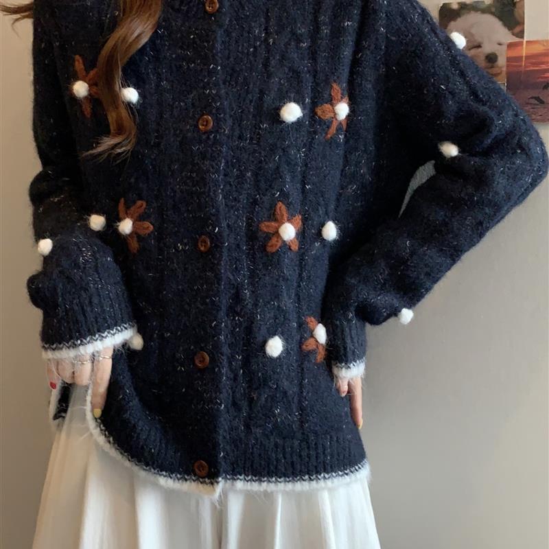 胖mm设计感立体花朵上 大码 好货小香风针织开衫 毛衣外套女春秋新款