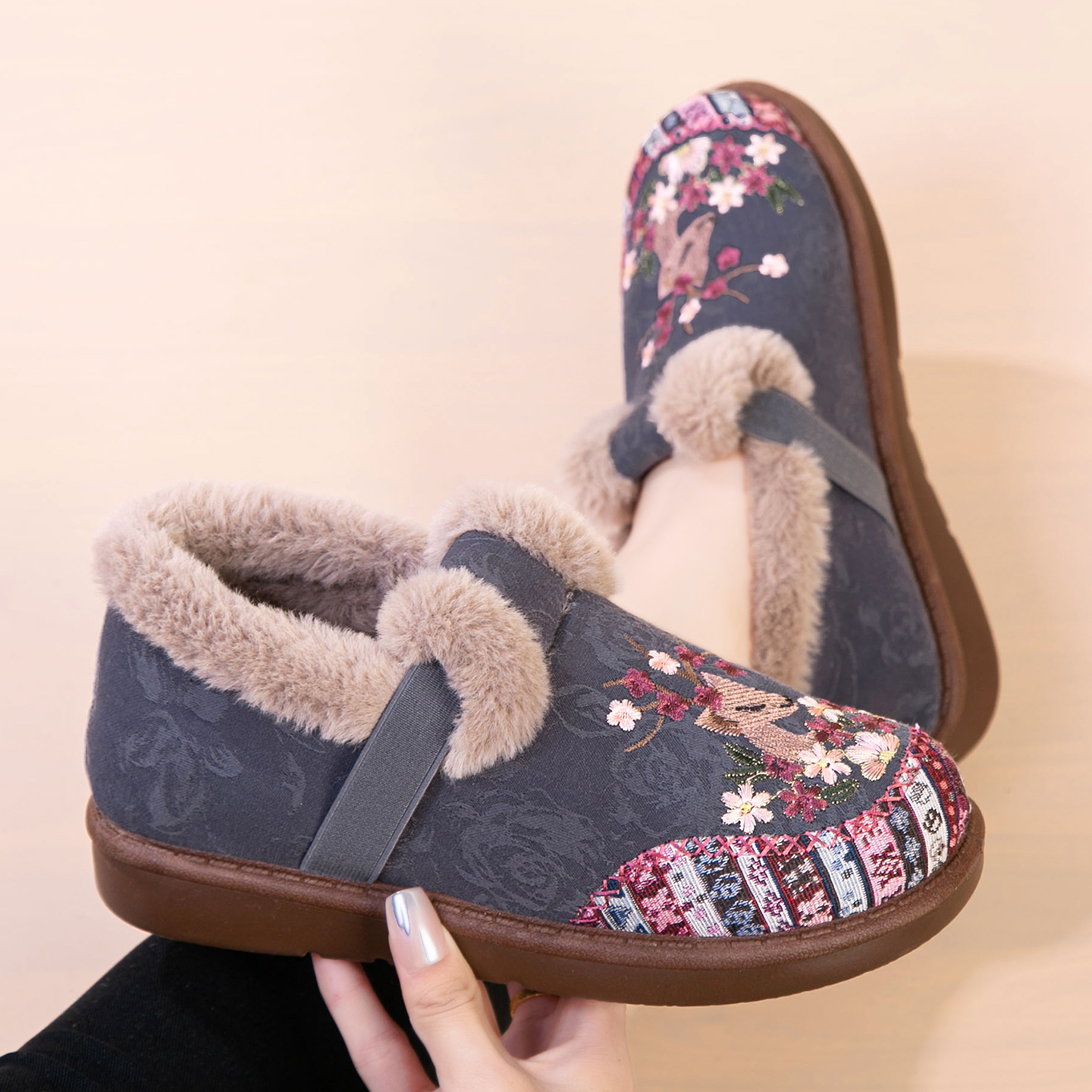 一脚蹬厚底绣花鞋 2025冬季 女加绒加厚保暖妈妈鞋 老北京棉鞋 子 新款