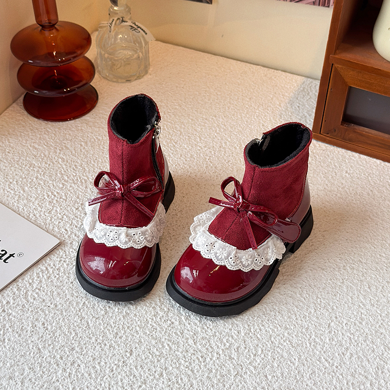 2025冬季 软底防滑公主风女宝鞋 女童加绒保暖马丁靴韩版 6岁 新款