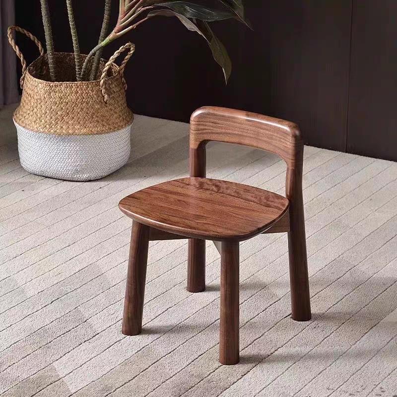 北美黑胡桃木小板凳儿童小椅子换鞋 凳带靠背矮凳全实木茶几小凳子