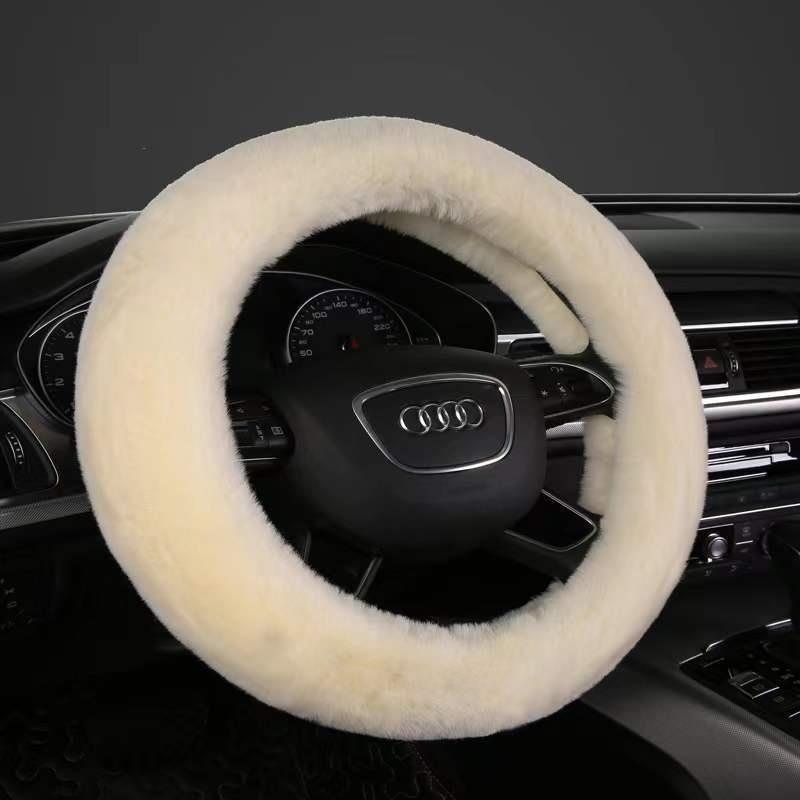 兔毛绒汽车方向盘套冬季 三件套防滑透气短毛把套通用保暖汽车把套