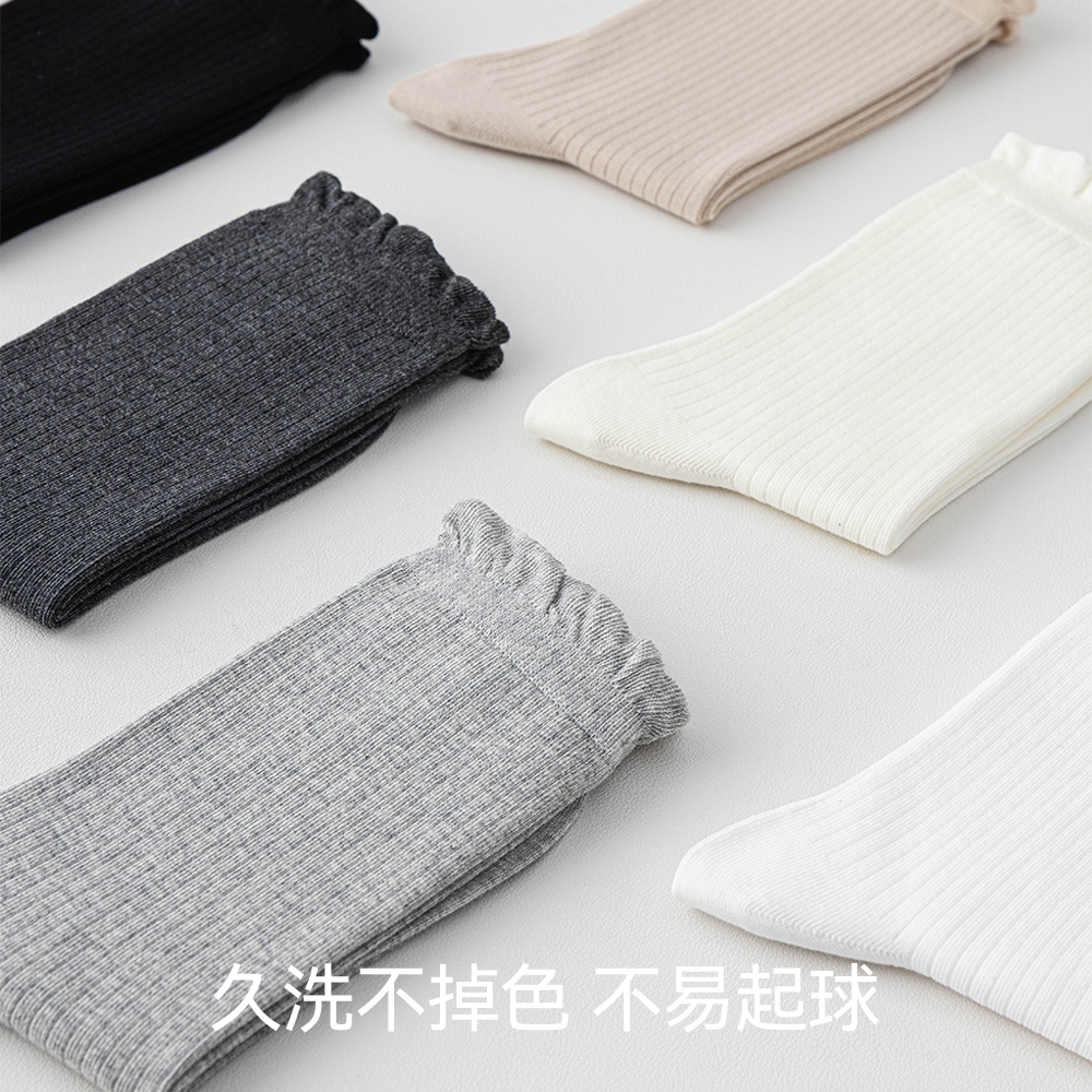 纯棉中筒棕咖色堆堆袜配勃肯鞋 2025新款 长袜 秋冬季 木耳边袜子女款